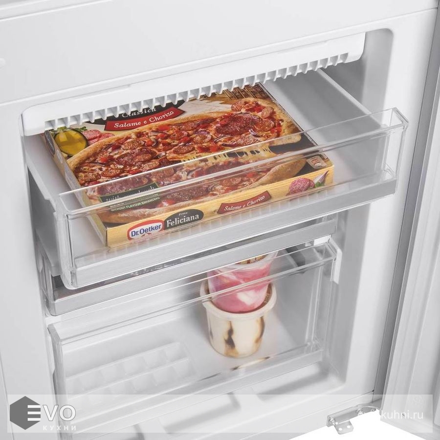 В нижней морозильной камере (57 л): 3 выдвижных ящика. емкость для льда.