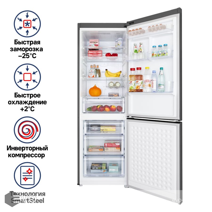 Функции: LED освещение No Frost (холодильной и морозильной камеры) Быстрое охлаждение Дисплей Режим отпуска Сигнал незакрытой двери Суперзаморозка
