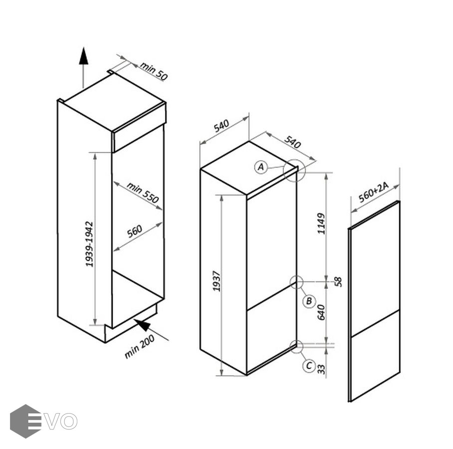 Размеры встраивания (ВхШхГ), мм: | 1939-1942х560х550 |