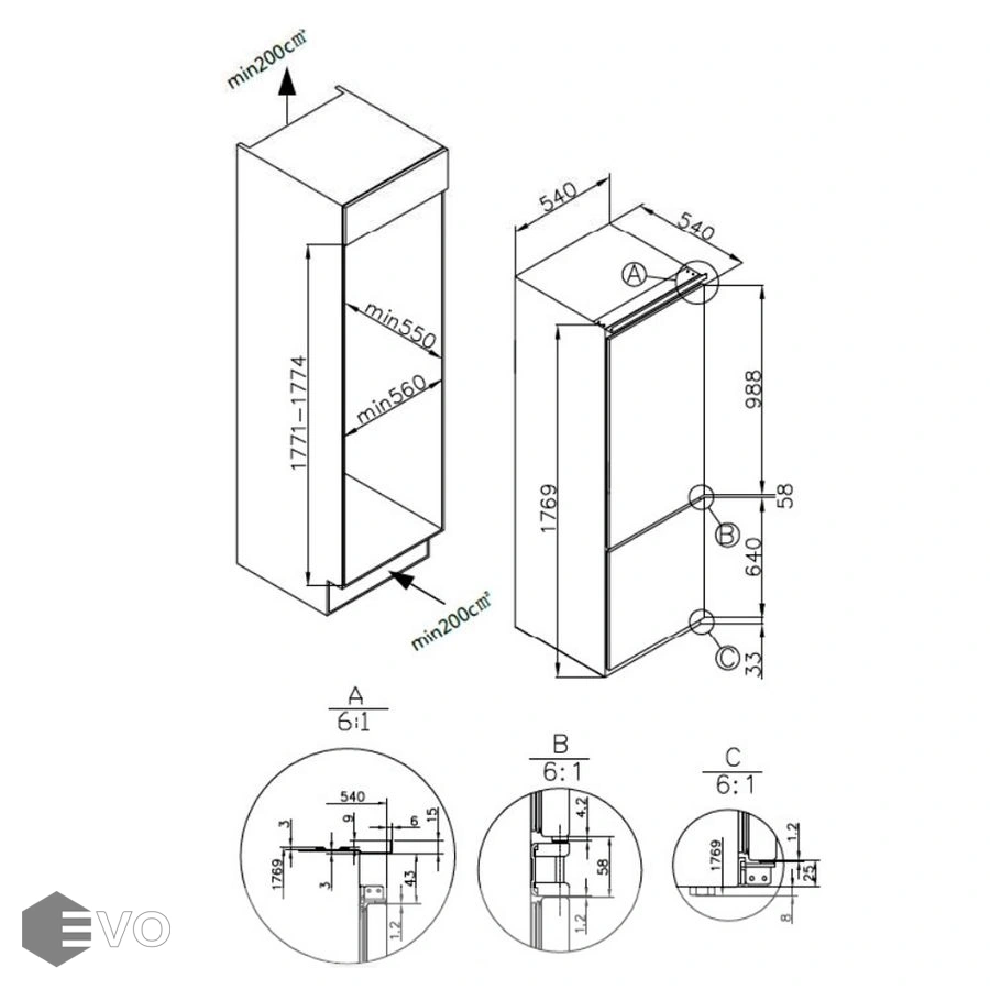 | Размеры встраивания (ВхШхГ), мм: | 1771-1774х560х550 |