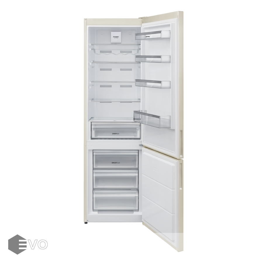 В холодильном отделении расположены устойчивые стеклянные полки и вместительный ящик в зоне свежести с контролем уровня влажности. В морозильной камере есть три выдвижных контейнера, один из которых имеет увеличенный объем для хранения крупных упаковок.