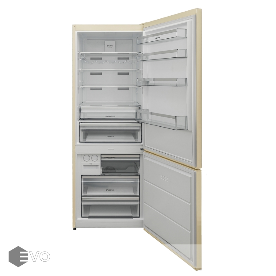 Холодильник KNFC 71863 B выполнен в бежевом цвете, фронт сделан из металла. Электронная система управления с цифровым дисплеем позволяет быстро выставить режим усиленного охлаждения или интенсивной заморозки.