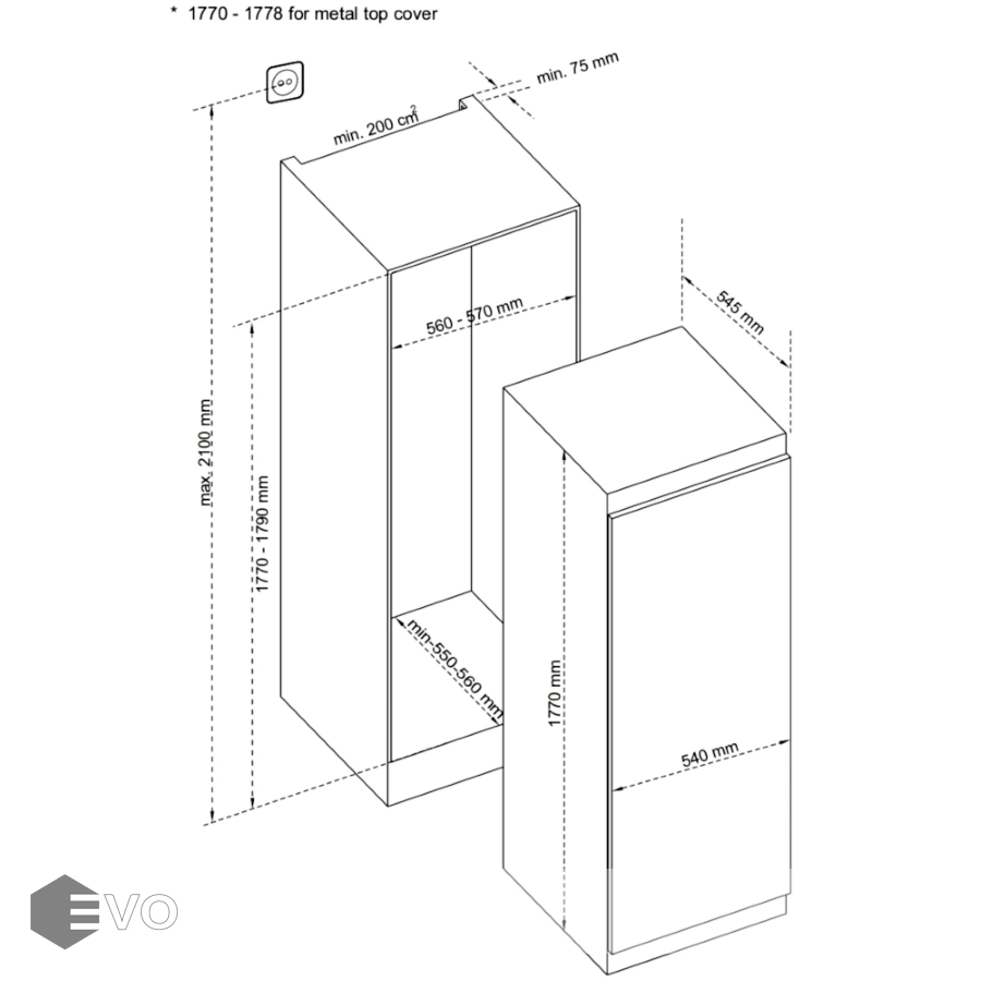 | Размеры встраивания (ВхШхГ), мм: | 1770x560x550 |