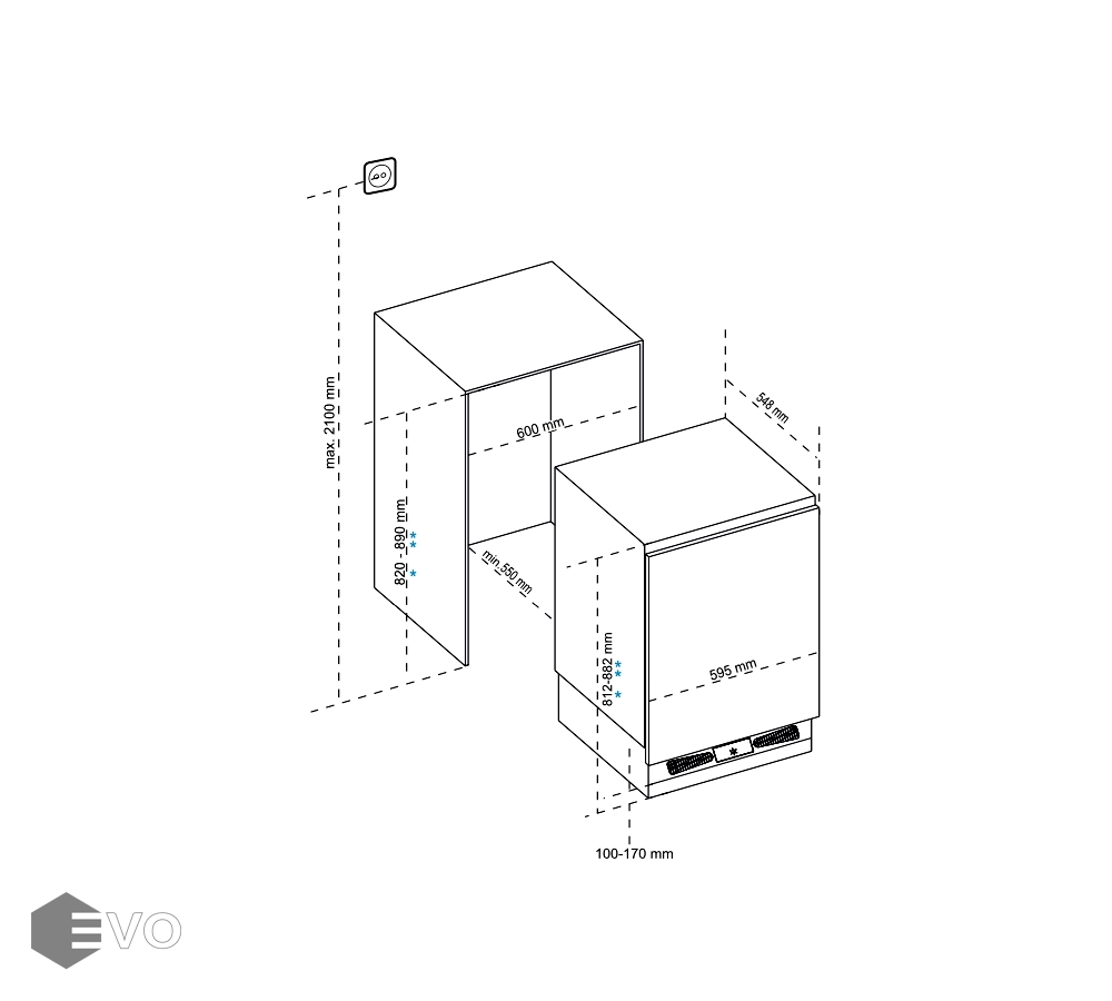 | Размеры встраивания (ВхШхГ), мм: | 820-890x600x550 |