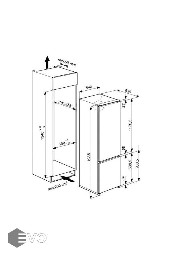 - Габариты ниши для встраивания (В х Ш х Г), см: 195 х 56 х 56