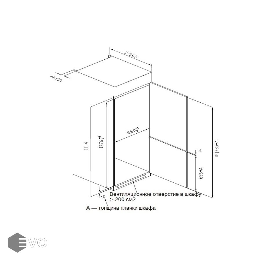 - Размер ниши для встраивания (ШхВхГ), мм: 560×1785(+10)х560(+10)