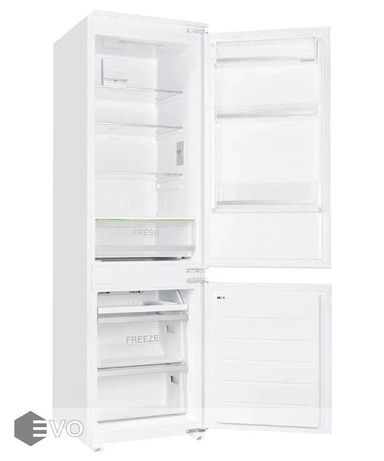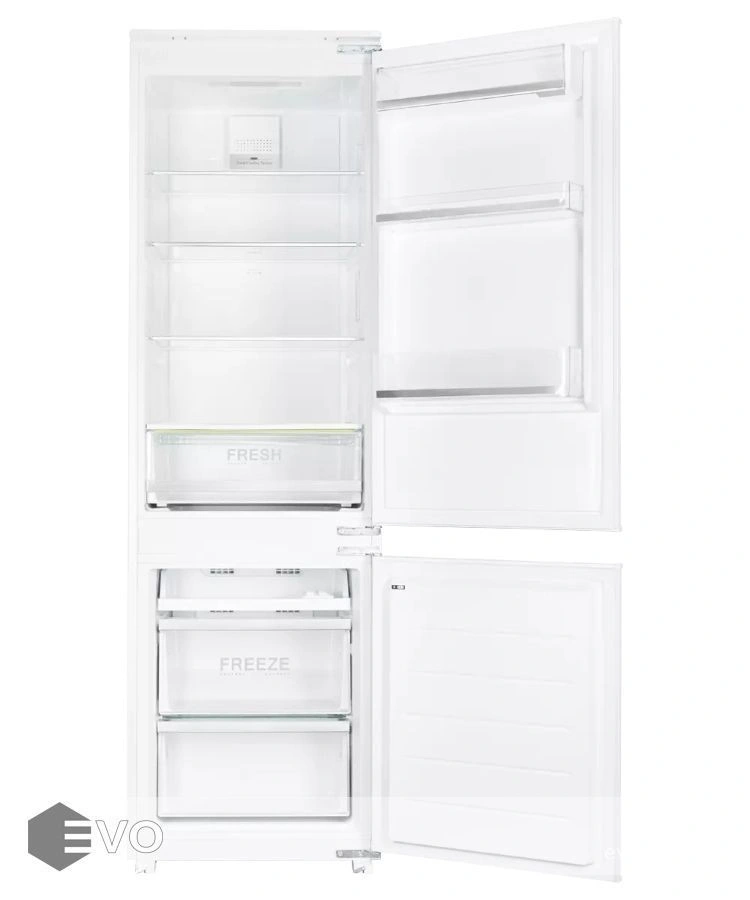 Холодильник NBM 17863 NO FROST классического белого оттенка имеет две камеры: холодильная и морозильная. Общий внутренний объем составляет 241 литр, благодаря чему прибор способен хранить большое количество продуктов. Яркая светодиодная подсветка обеспечивает удобство использования. Модель отличается низким энергопотреблением и уровнем шума при работе.