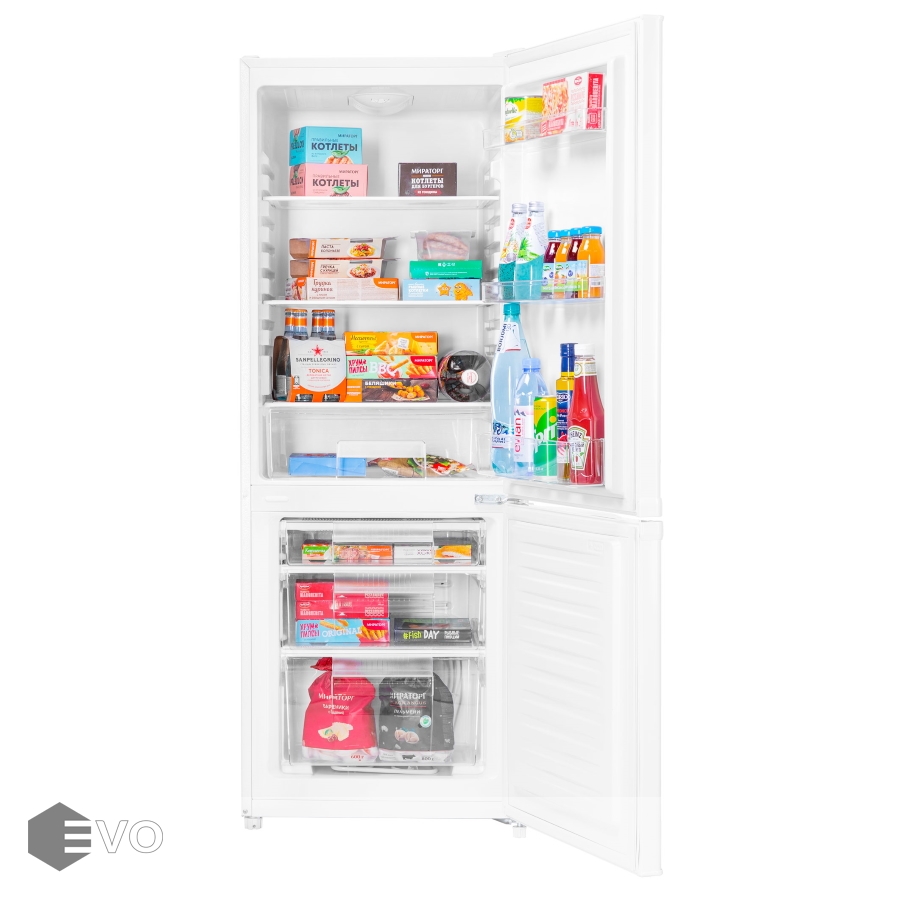 Холодильник MAUNFELD MFF150W – двухкамерный холодильник высотой 148 см имеет верхнее расположение морозилки, корпус шириной 55 см сделан из металла. Внутренняя часть выполнена из антибактериального белого пластика легкой очистки. Предусмотрена возможность перенавешивания двери. Система охлаждения - DeFrost позволит вам размораживать весь холодильник всего раз в полгода.