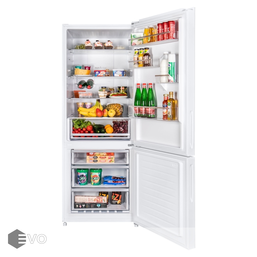 Холодильник MAUNFELD MFF1857NFW – двухкамерный холодильник высотой 185 см с инверторным компрессором и сенсорным управлением. Система охлаждения всего холодильника - «Total No Frost». Это инновационная разработка, при которой холодный сухой воздух равномерно распределяется при помощи вентилятора по всей камере.