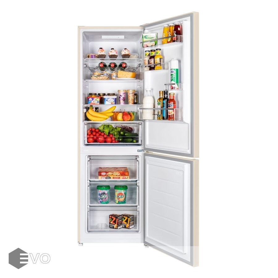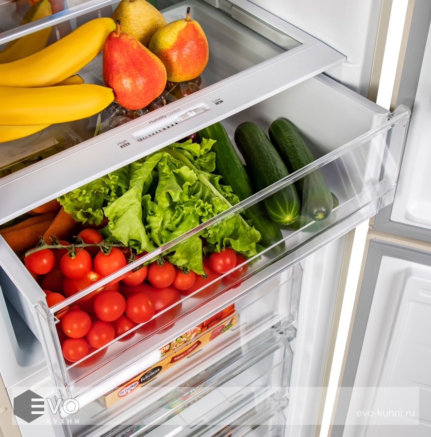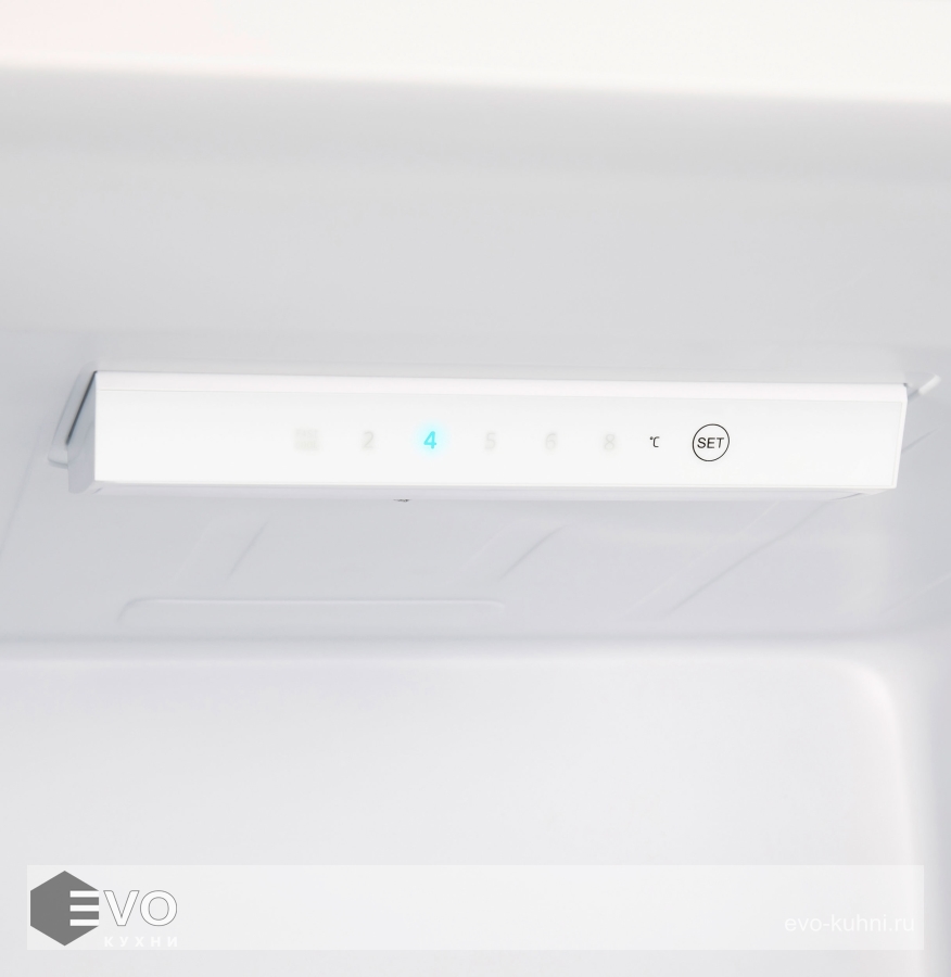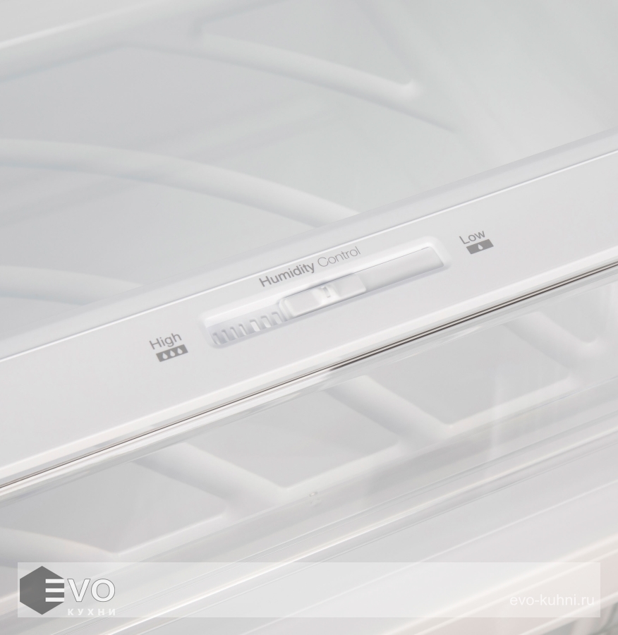 Предусмотрена возможность перенавешивания двери. Сенсорная кнопки выбора температуры (+2°C до +8°C) и быстрого охлаждения морозильной камеры находятся на дисплее в верхней части холодильника. Функция Humidity control позволяет регулировать уровень влажности в зоне свежести, благодаря чему овощи и фрукты дольше хранятся.