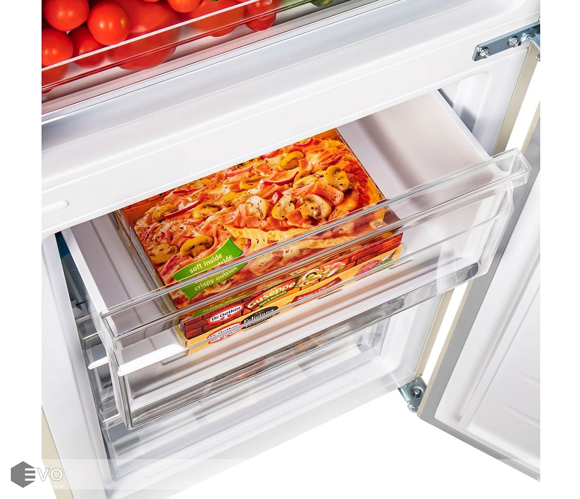 2. В нижней морозильной камере находятся: 3 выдвижных ящика, емкость для льда.