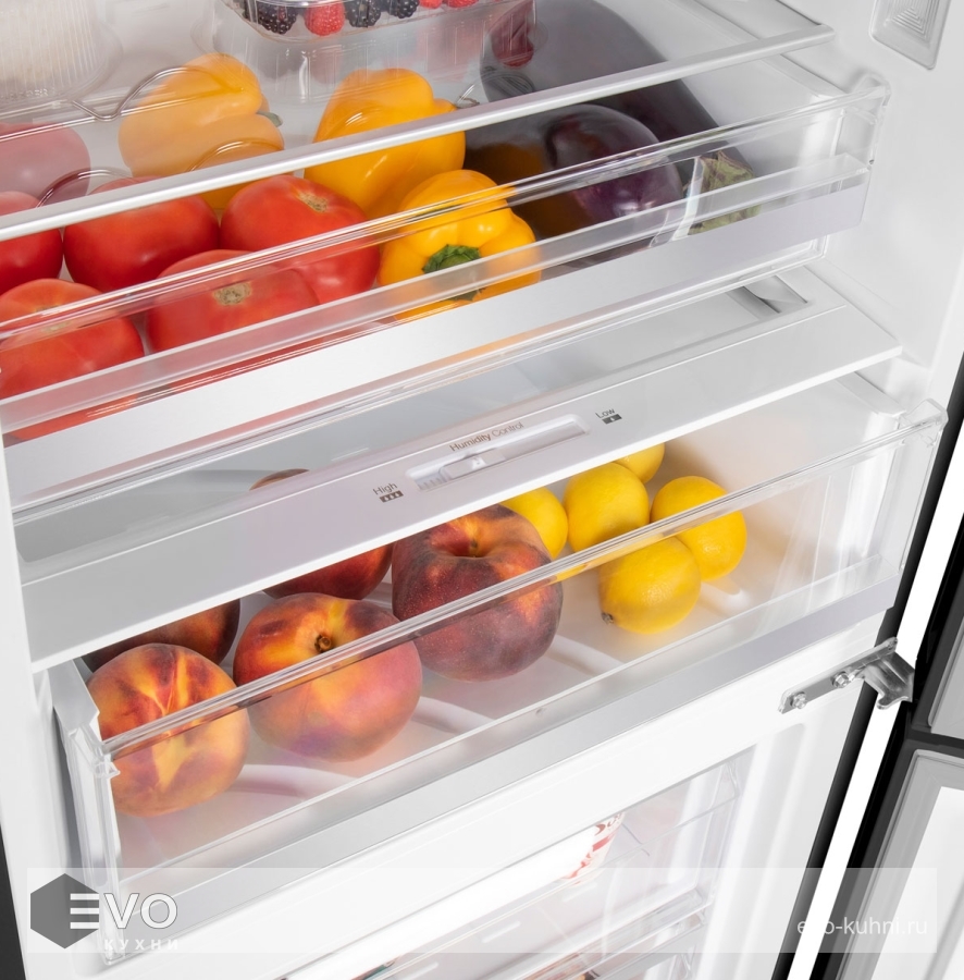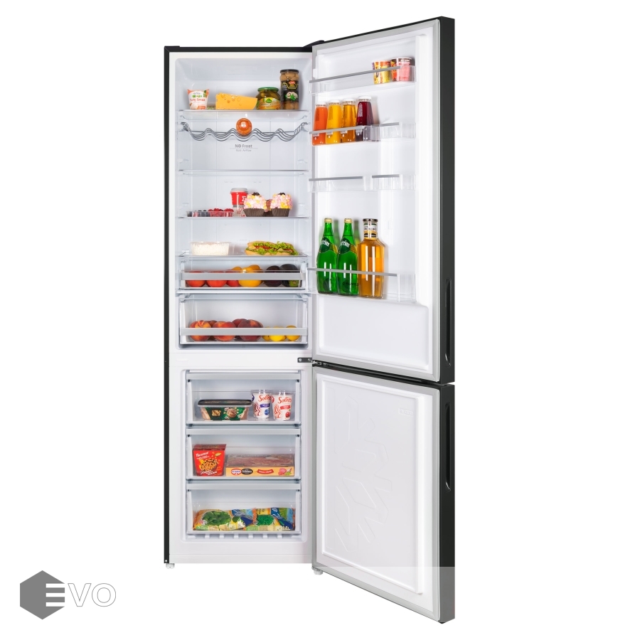 Холодильник MAUNFELD MFF200NFB – двухкамерный холодильник общим объемом 377 л и высотой 200 см с дисплеем и сенсорным управлением. Система охлаждения всего холодильника - «No Frost». Корпус шириной 60 см сделан из нержавеющей стали, фасады дверей - из закаленного стекла. Внутренняя часть выполнена из антибактериального белого пластика легкой очистки.