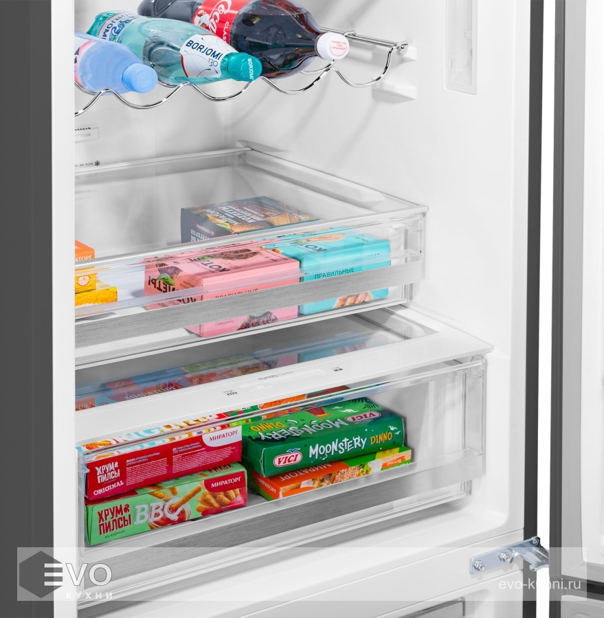2. В нижней морозильной камере находятся: 3 выдвижных ящика, емкость для льда.
