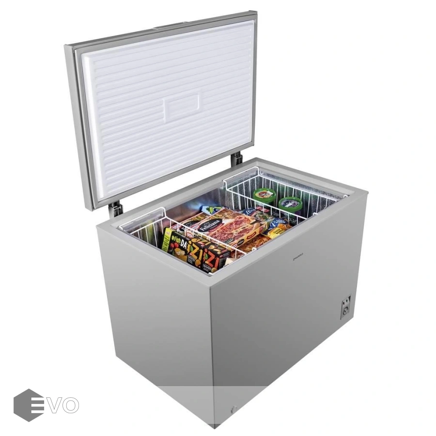 Температура морозильной камеры (от -12℃ до -30℃) регулируется с помощью ручки на термостате, установленном на лицевой стороне ларя. Система охлаждения морозильной камеры - «DeFrost», что потребует от вас размораживать ее всего раз в полгода. Для этого предусмотрено сливное отверстие в нижней части морозильного ларя, закрытое резиновой крышкой.