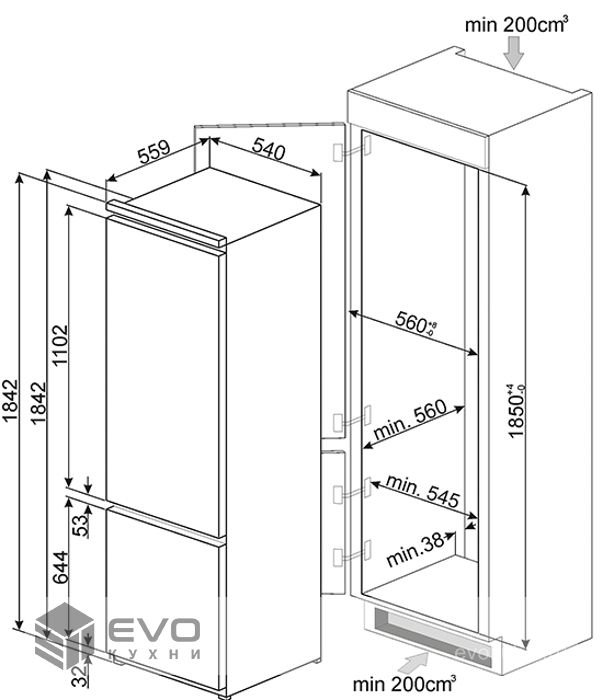 Размеры (В х Ш х Г): 1842 х 540 х 559 мм