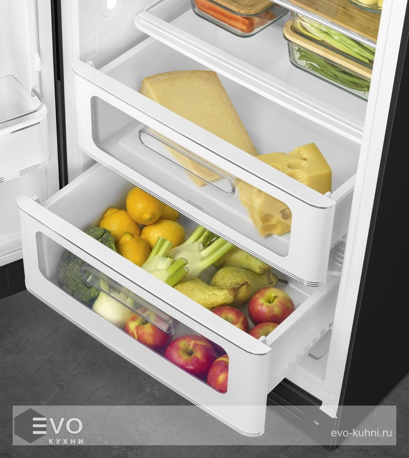 - Тип ящика для овощей и фруктов: на скользящих направляющих