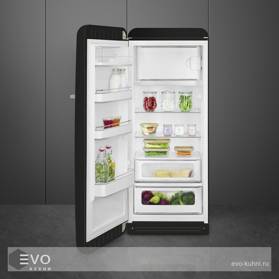 Холодильник Smeg FAB28LBL5 – модель, выполненная в стиле ретро и имеет дизайн в стиле 50-х годов, это настоящее украшение классической кухни. Прибор характеризуется экономным потреблением электроэнергии, при компактных размерах внутренний объем позволяет хранить большое количество продуктов.