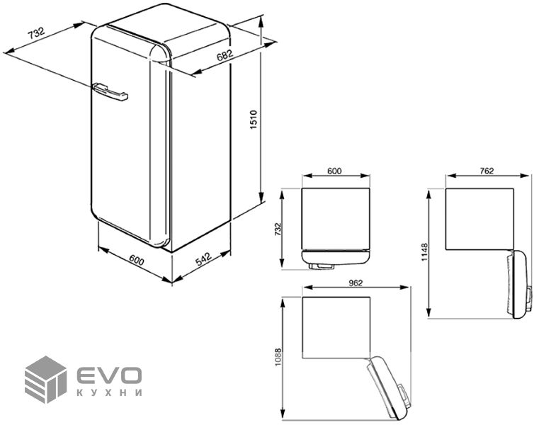 Размеры (В х Ш х Г): 1510 х 600 х 682 мм (глубина с ручкой - 732 мм)