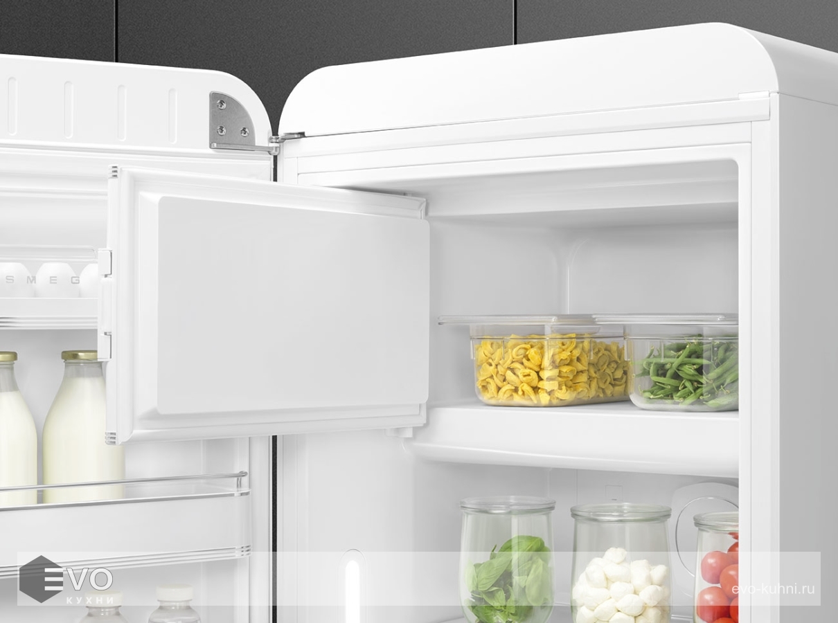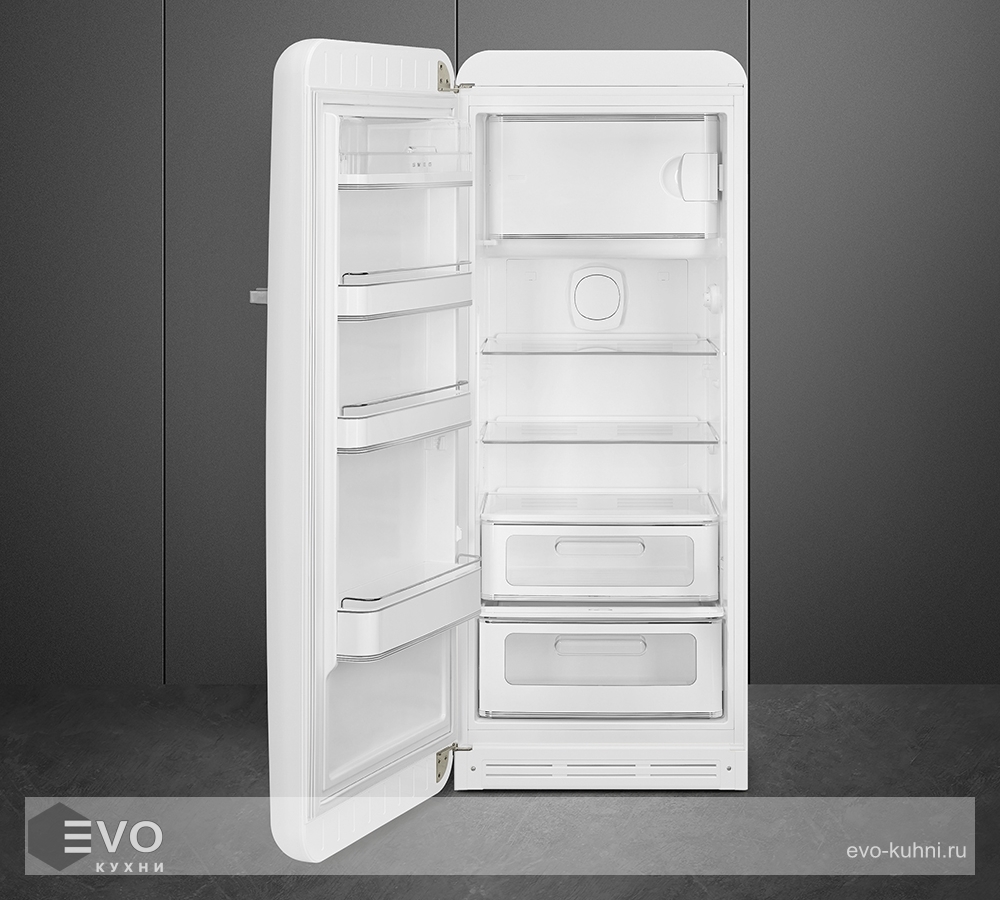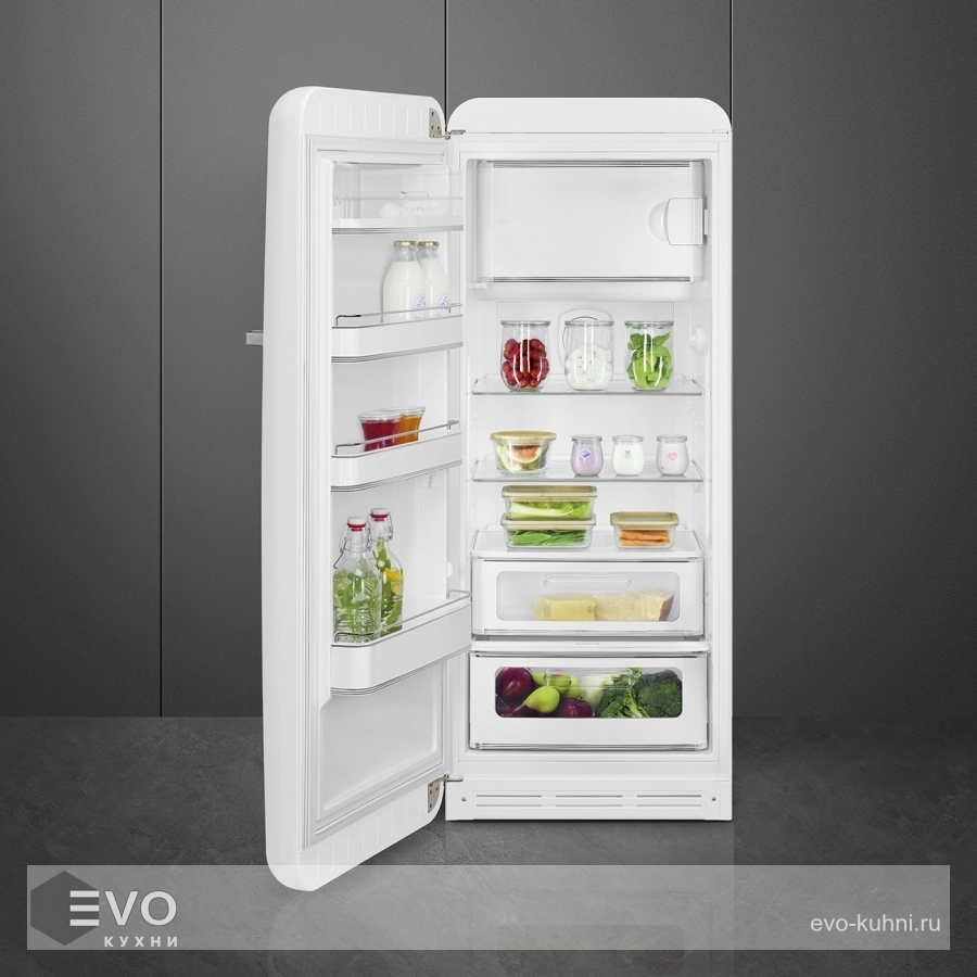 Холодильник Smeg FAB28LWH5 – модель, выполненная в стиле ретро и имеет дизайн в стиле 50-х годов, это настоящее украшение классической кухни. Прибор характеризуется экономным потреблением электроэнергии, при компактных размерах внутренний объем позволяет хранить большое количество продуктов.