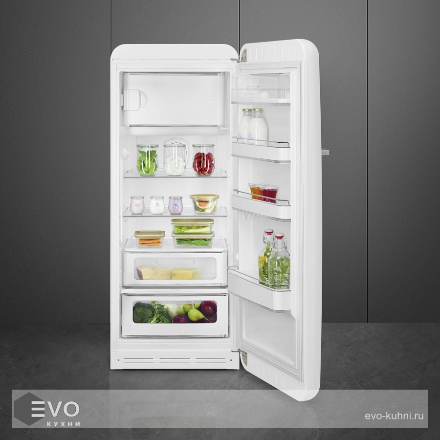 Холодильник Smeg FAB28RBE5 – модель, выполненная в стиле ретро и имеет дизайн в стиле 50-х годов, это настоящее украшение классической кухни. Прибор характеризуется экономным потреблением электроэнергии, при компактных размерах внутренний объем позволяет хранить большое количество продуктов.