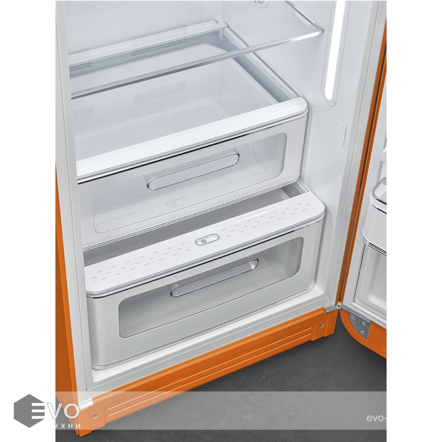 Холодильник Smeg FAB28ROR5 – модель, выполненная в стиле ретро и имеет дизайн в стиле 50-х годов, это настоящее украшение классической кухни. Прибор характеризуется экономным потреблением электроэнергии, при компактных размерах внутренний объем позволяет хранить большое количество продуктов.