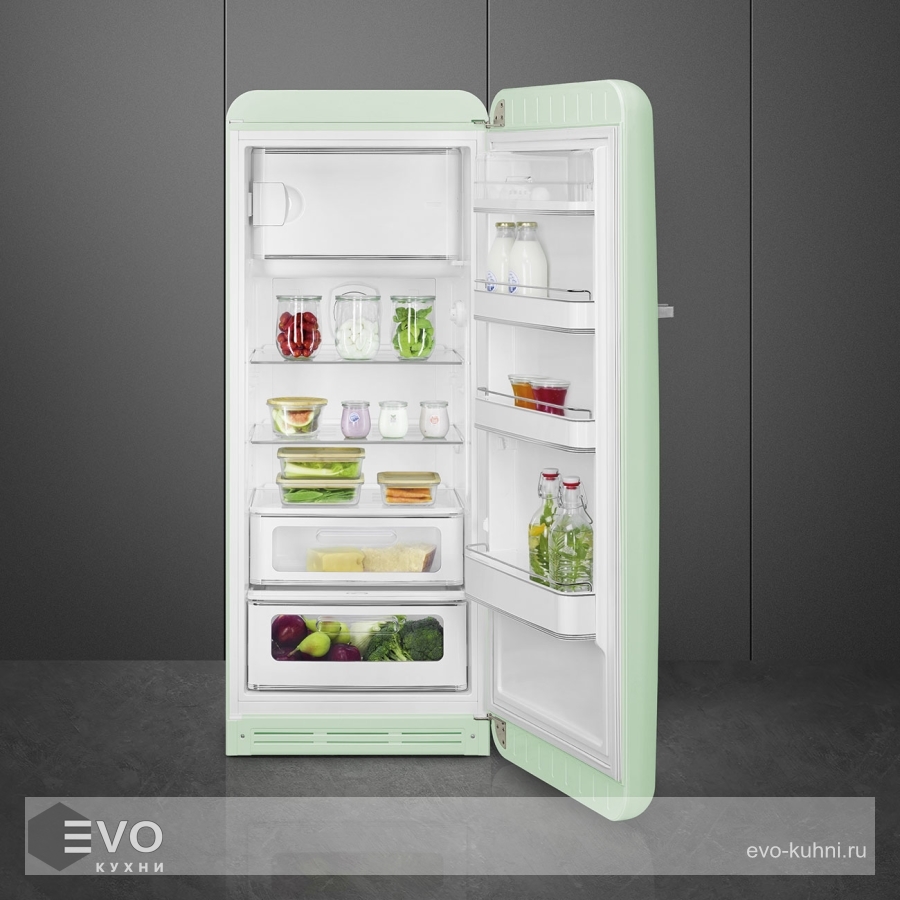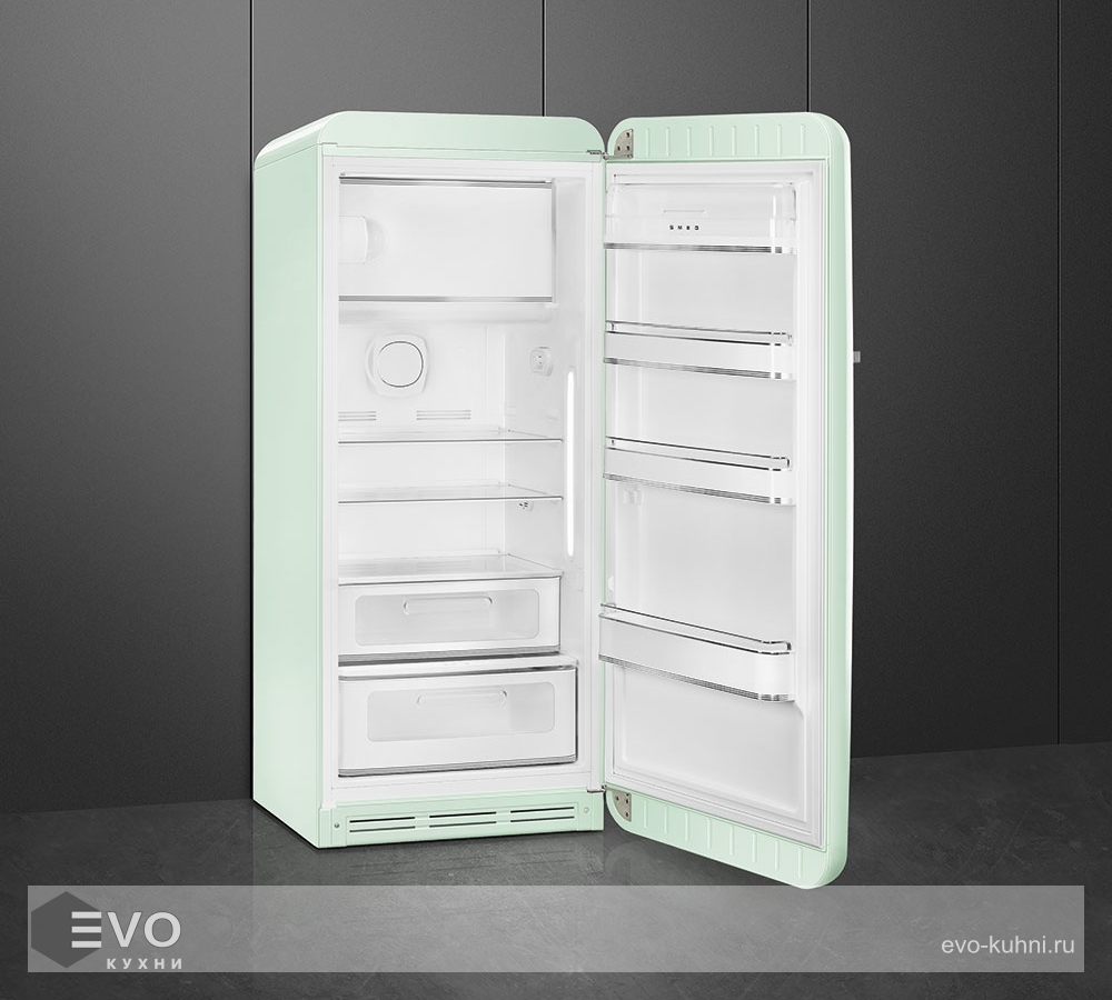 Холодильник Smeg FAB28RPG5 – модель, выполненная в стиле ретро и имеет дизайн в стиле 50-х годов, это настоящее украшение классической кухни. Прибор характеризуется экономным потреблением электроэнергии, при компактных размерах внутренний объем позволяет хранить большое количество продуктов.