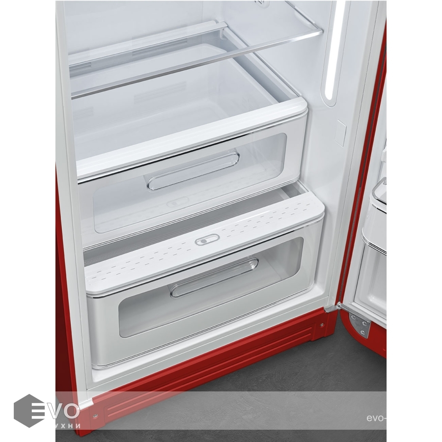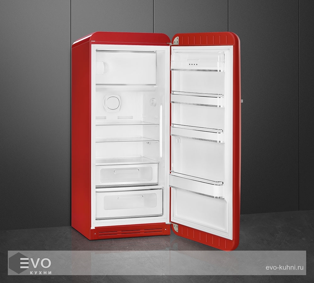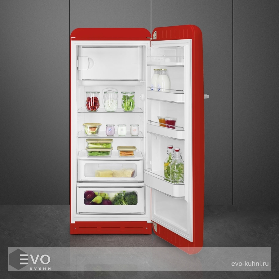 Холодильник Smeg FAB28RRD5 – модель, выполненная в стиле ретро и имеет дизайн в стиле 50-х годов, это настоящее украшение классической кухни. Прибор характеризуется экономным потреблением электроэнергии, при компактных размерах внутренний объем позволяет хранить большое количество продуктов.