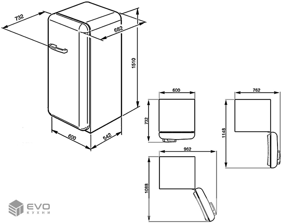 Размеры (В х Ш х Г): 1510 х 600 х 682 мм (глубина с ручкой - 732 мм)