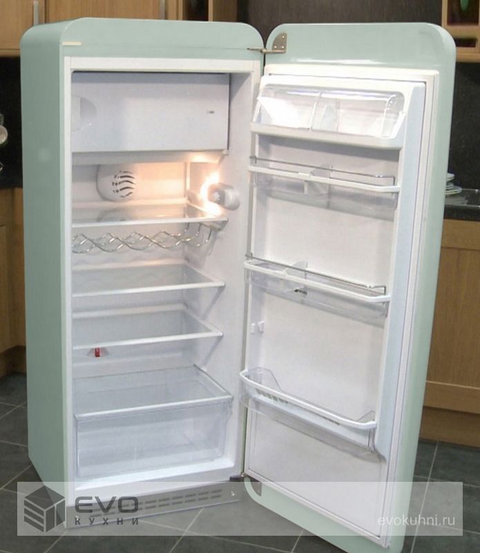 Отдельностоящий однодверный холодильник, стиль 50-х годов, 60 см Зеленый Класс энергопотребления А++.