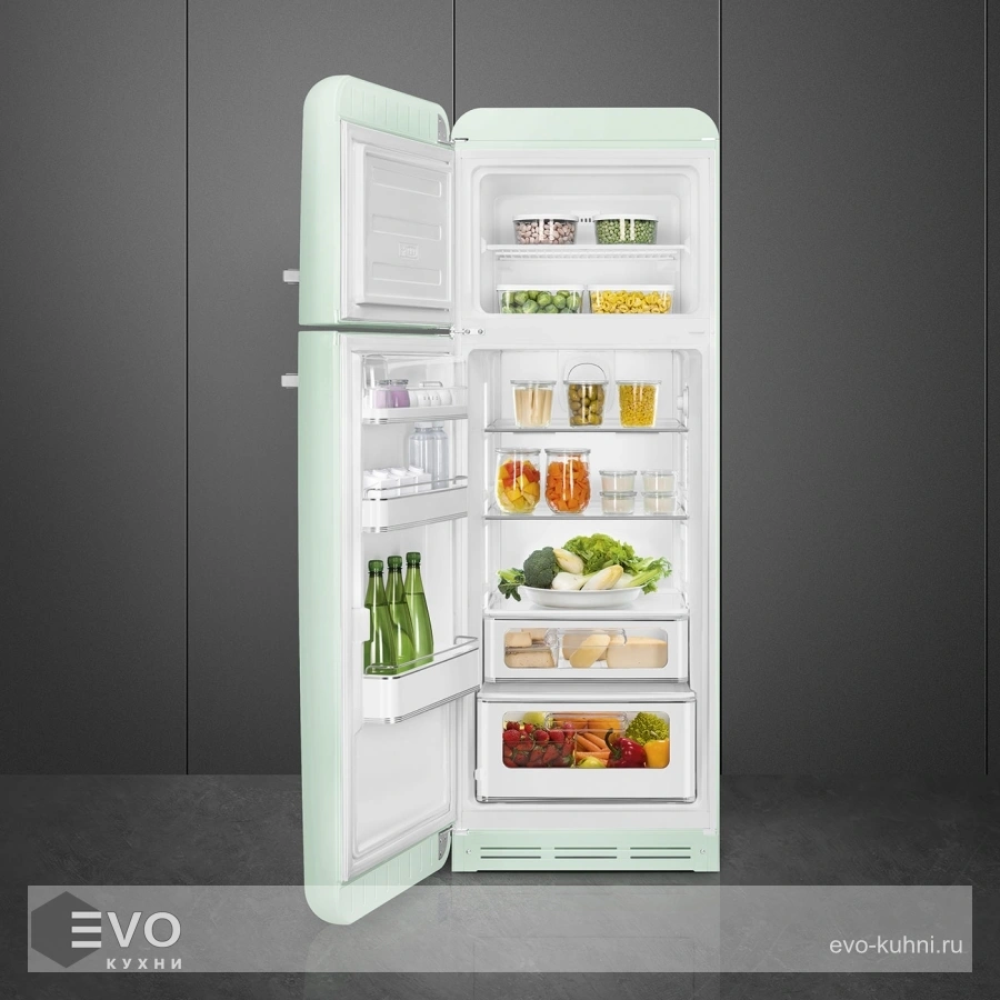 Холодильник Smeg FAB30LPK5 – отдельностоящий, двухкамерный холодильник с морозильной камерой и электронным управлением. Дизайн выполнен в ретро-стиле 50-х годов. Установлено яркое и комфортное LED освещение. Размораживание автоматическое, холодильник не требует хлопот по уходу. При аварийном отключении питания температура внутри будет сохраняться до 30 часов.