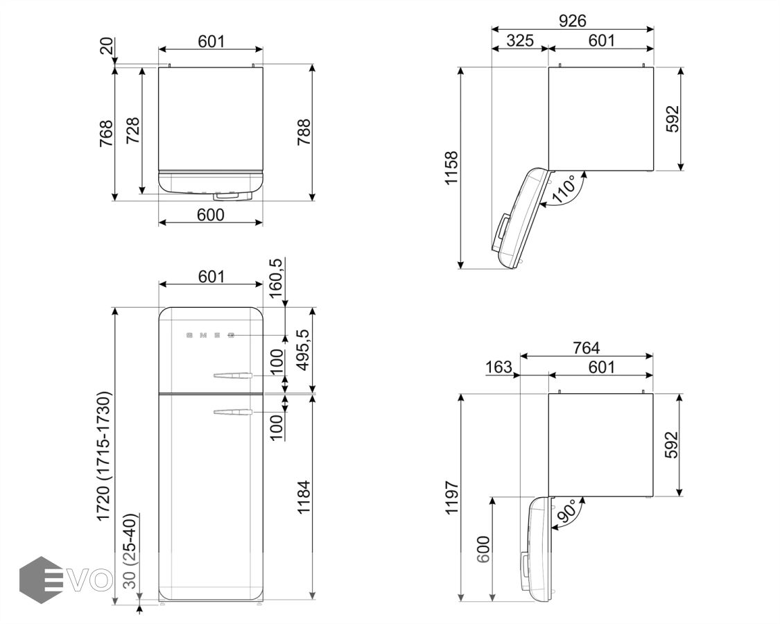 - Глубина, мм: 728