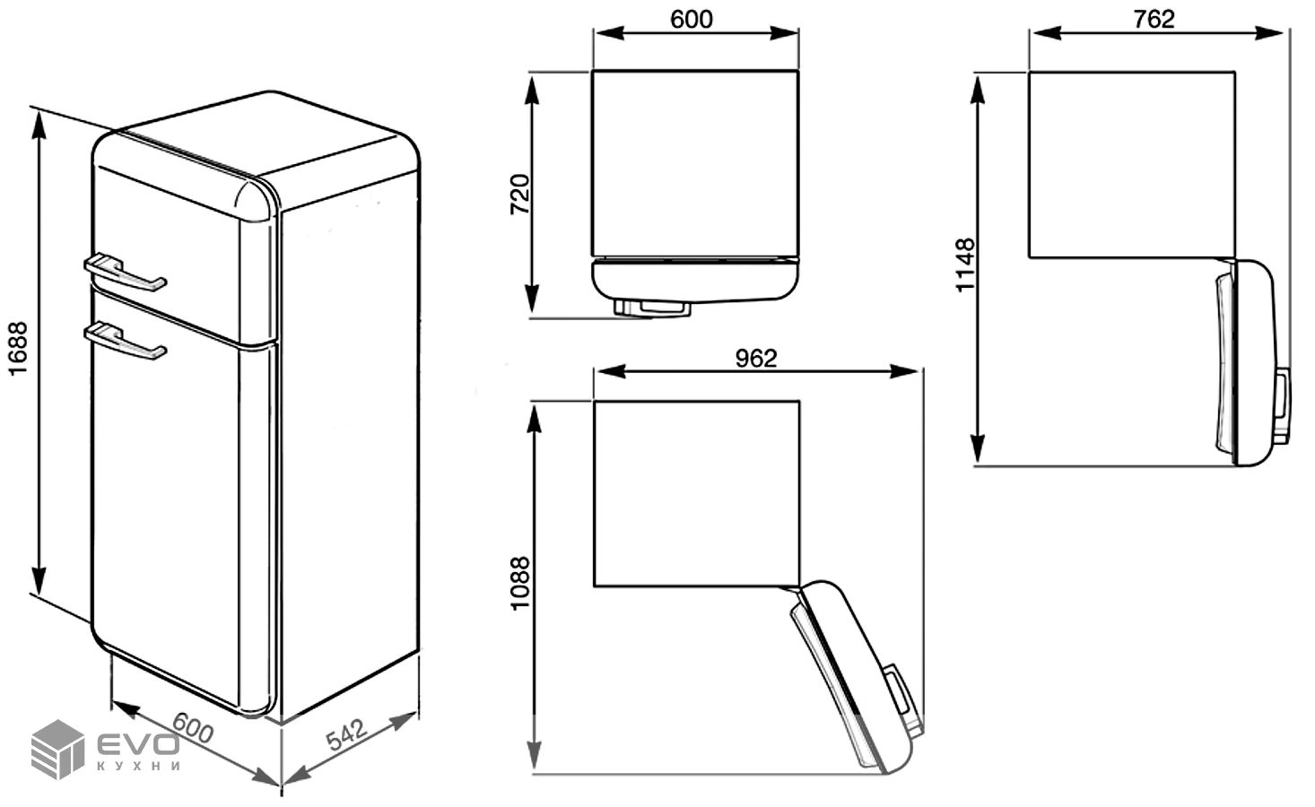 Для полного выдвижения внутренних ящиков необходимо открытие дверей холодильника минимум на 135 градусов (362 мм)