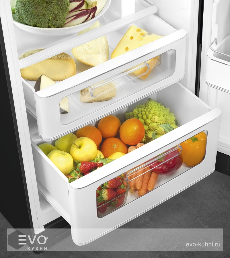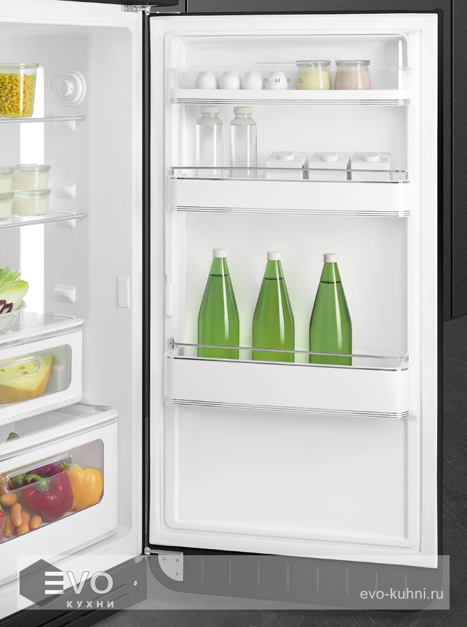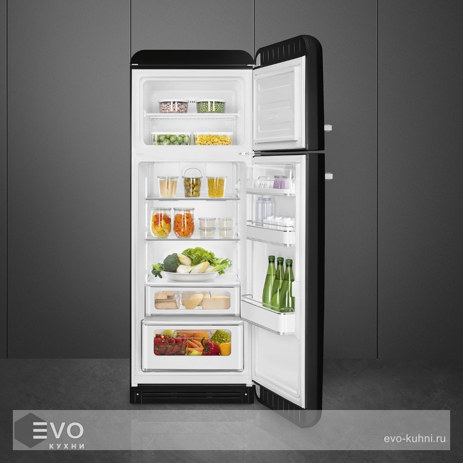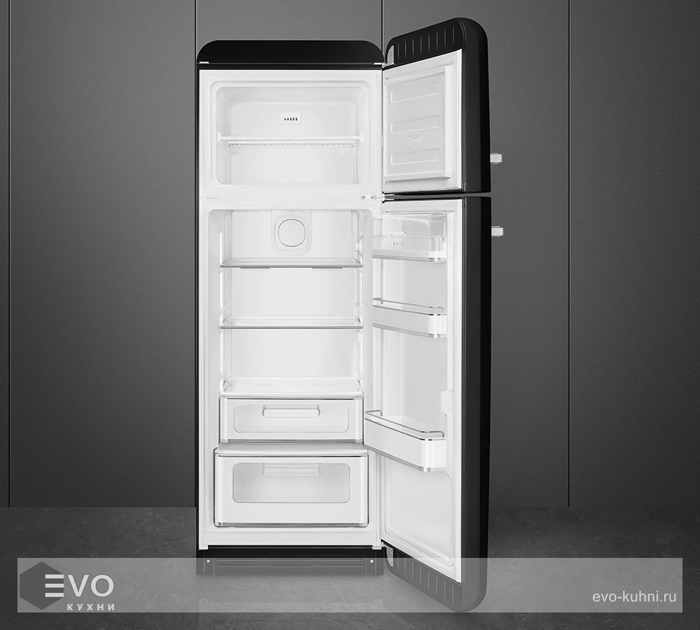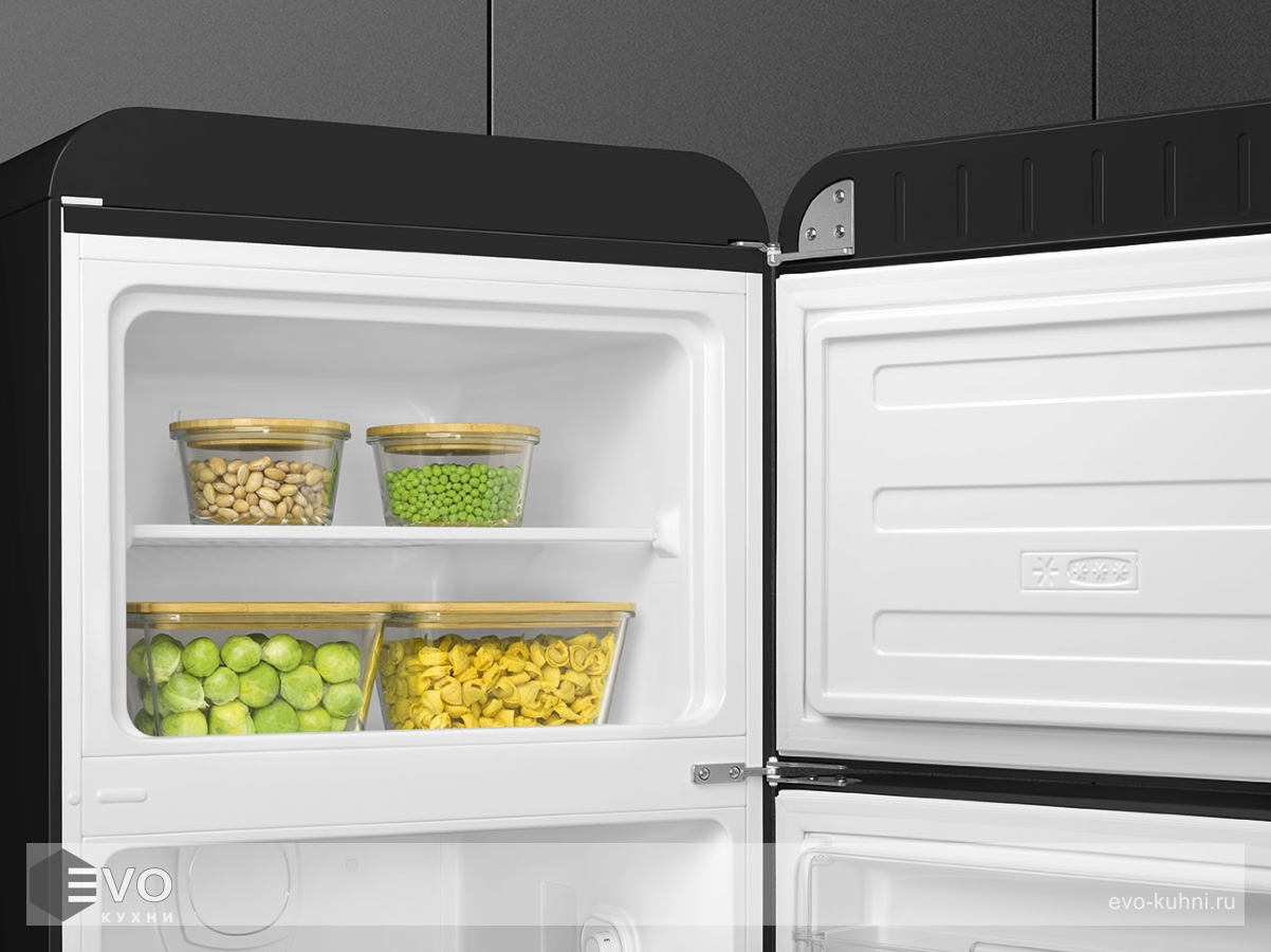 Холодильник Smeg FAB30RBL5 – отдельностоящий, двухкамерный холодильник с морозильной камерой и электронным управлением. Дизайн выполнен в ретро-стиле 50-х годов. Установлено яркое и комфортное LED освещение. Размораживание автоматическое, холодильник не требует хлопот по уходу. При аварийном отключении питания температура внутри будет сохраняться до 30 часов.