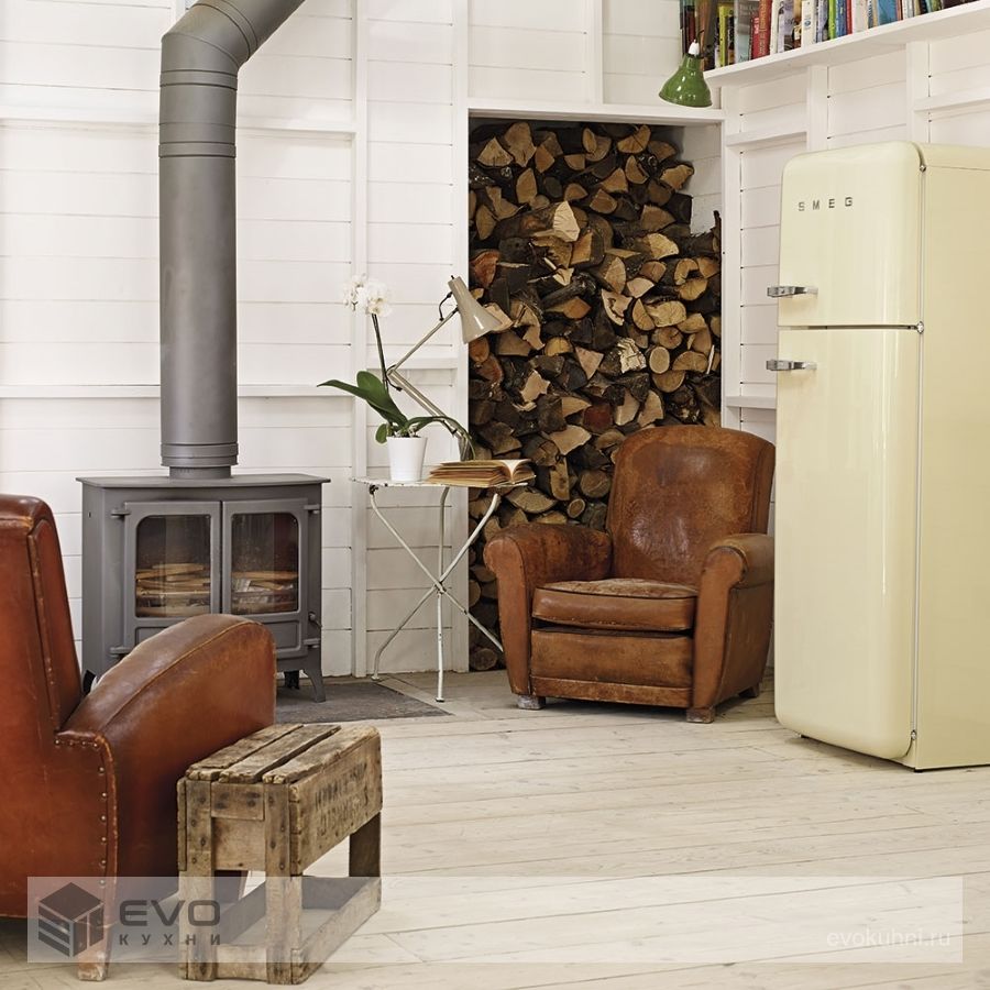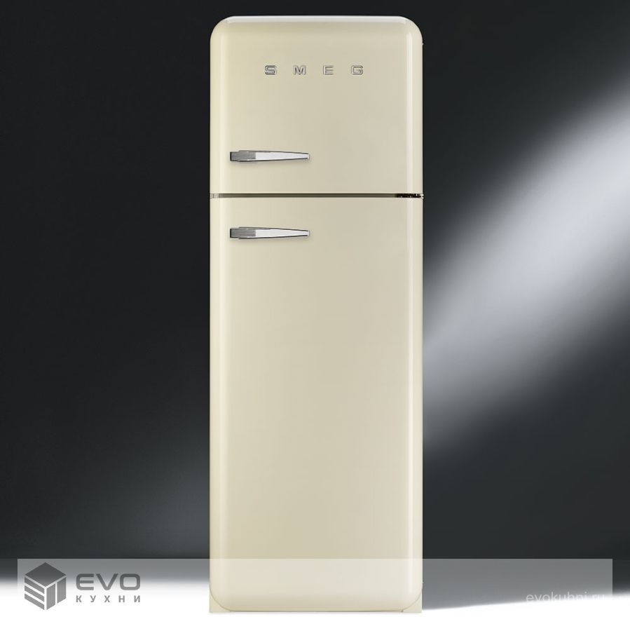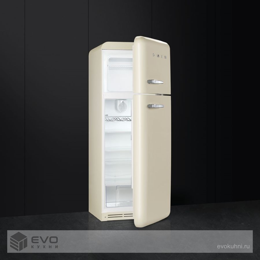 Отдельностоящий двухдверный холодильник, стиль 50-х годов, 60 см, кремовый Класс энергопотребления А++.