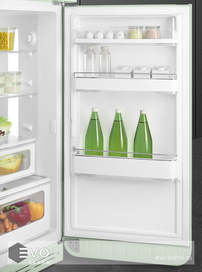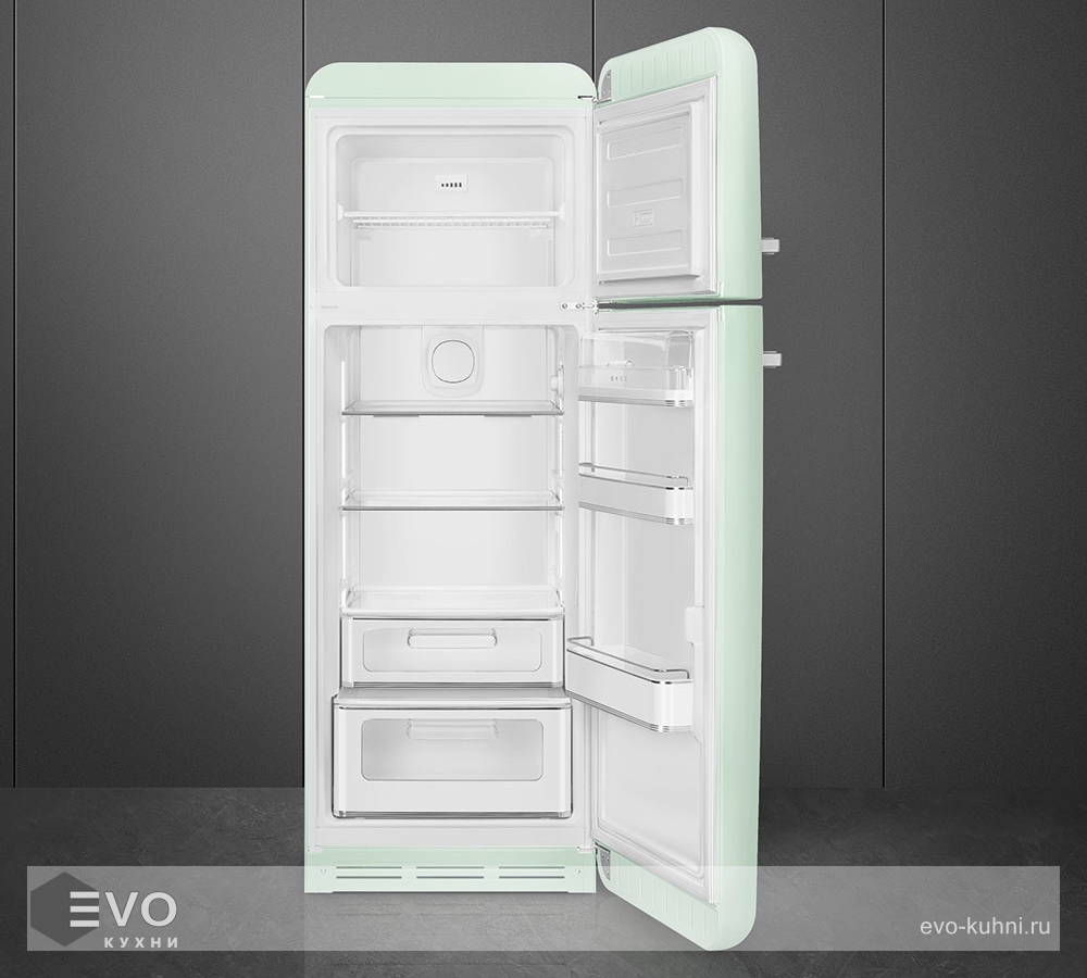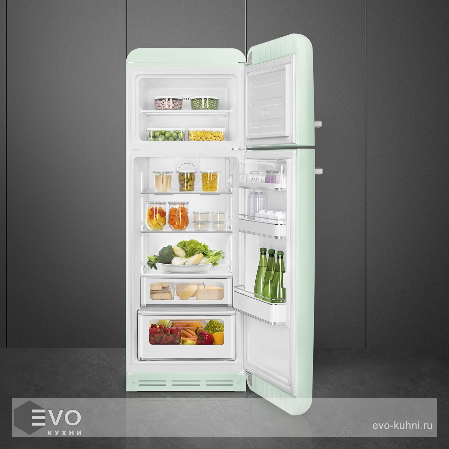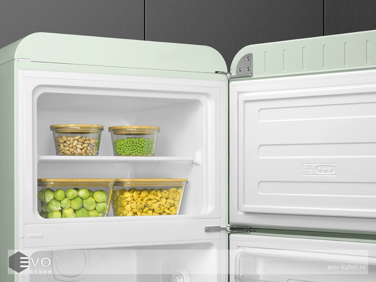 Холодильник Smeg FAB30RPG5 – отдельностоящий, двухкамерный холодильник с морозильной камерой и электронным управлением. Дизайн выполнен в ретро-стиле 50-х годов. Установлено яркое и комфортное LED освещение. Размораживание автоматическое, холодильник не требует хлопот по уходу. При аварийном отключении питания температура внутри будет сохраняться до 30 часов.