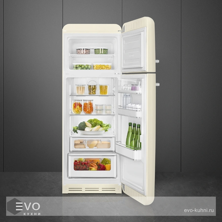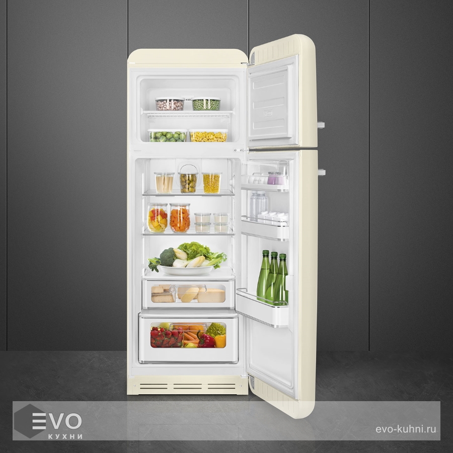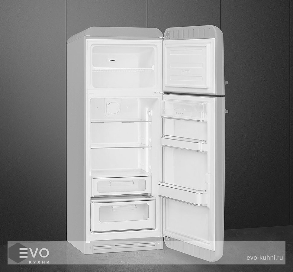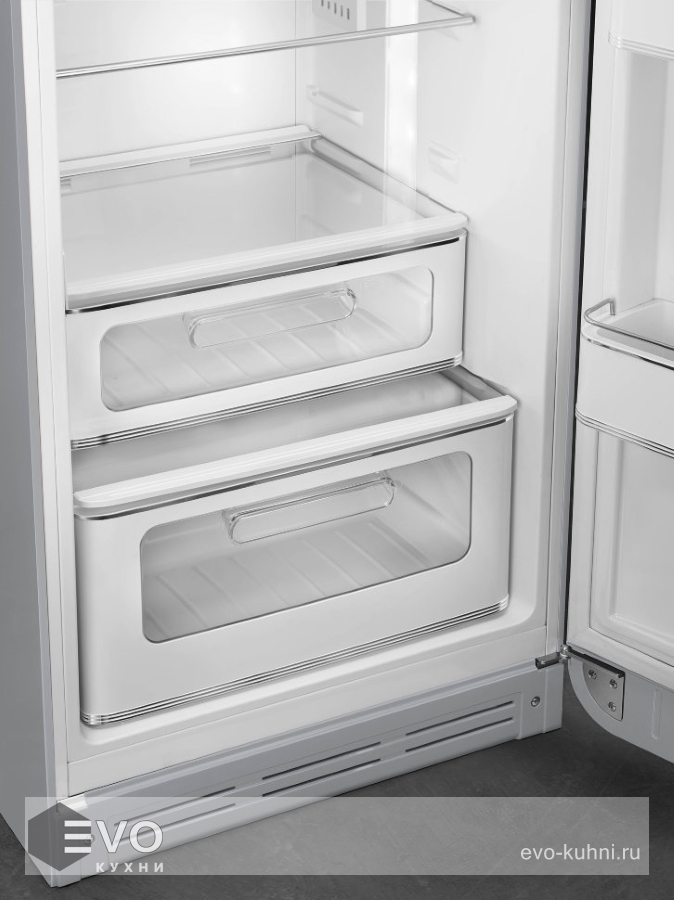 Холодильник Smeg FAB30RSV5 – отдельностоящий, двухкамерный холодильник с морозильной камерой и электронным управлением. Дизайн выполнен в ретро-стиле 50-х годов. Установлено яркое и комфортное LED освещение. Размораживание автоматическое, холодильник не требует хлопот по уходу. При аварийном отключении питания температура внутри будет сохраняться до 30 часов.