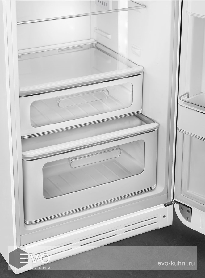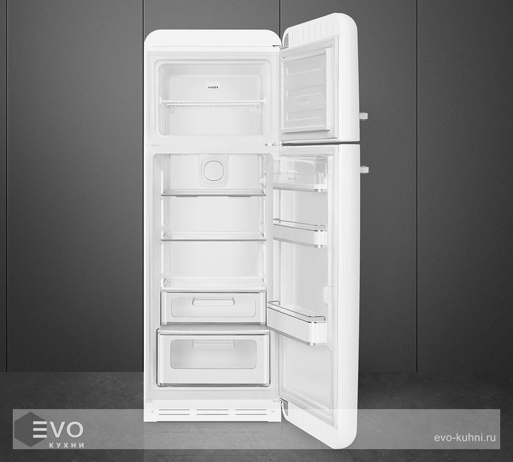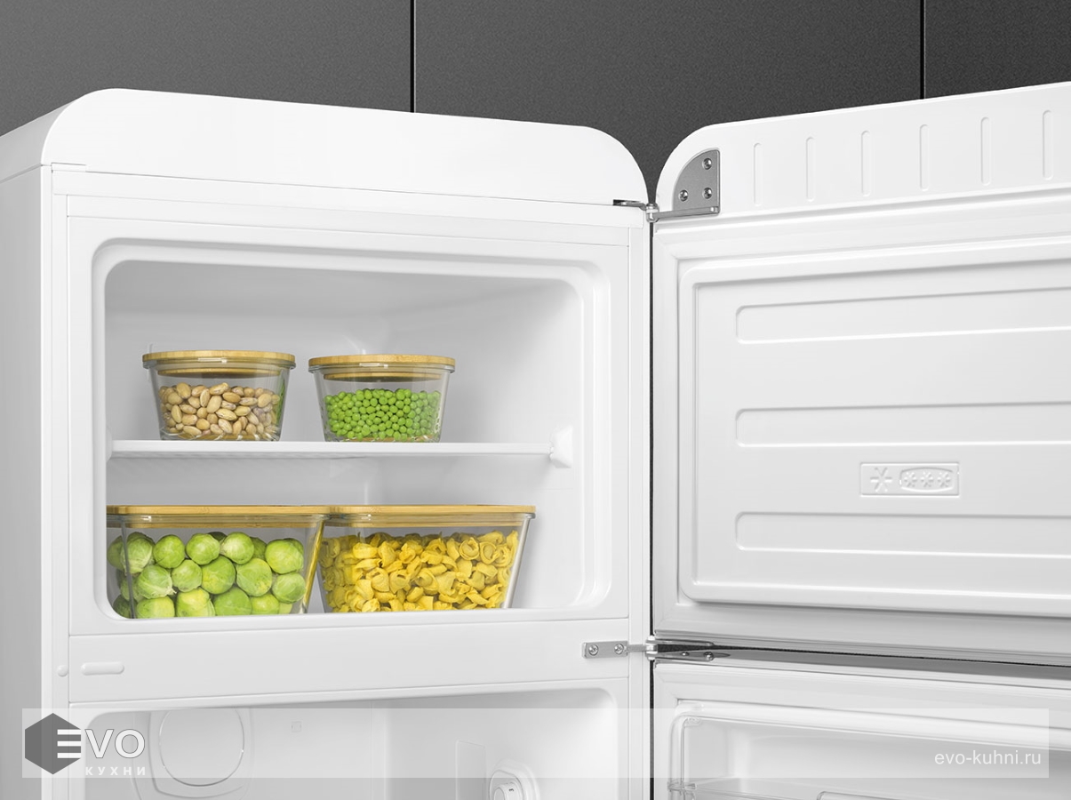 Холодильник Smeg FAB30RWH5 – отдельностоящий, двухкамерный холодильник с морозильной камерой и электронным управлением. Дизайн выполнен в ретро-стиле 50-х годов. Установлено яркое и комфортное LED освещение. Размораживание автоматическое, холодильник не требует хлопот по уходу. При аварийном отключении питания температура внутри будет сохраняться до 30 часов.