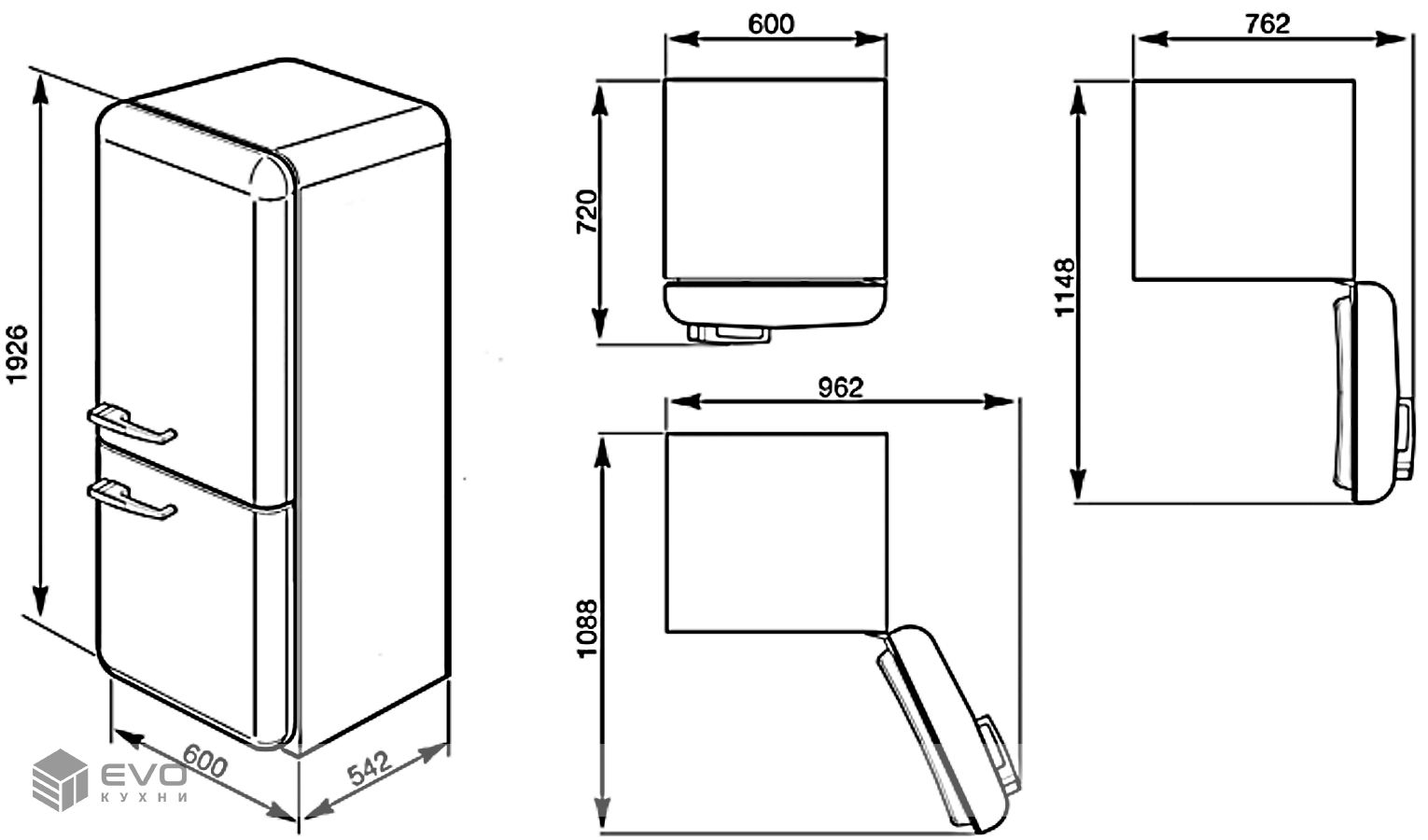 Для полного выдвижения внутренних ящиков необходимо открытие дверей холодильника минимум на 135 градусов (362 мм)