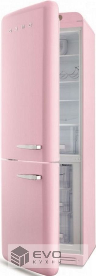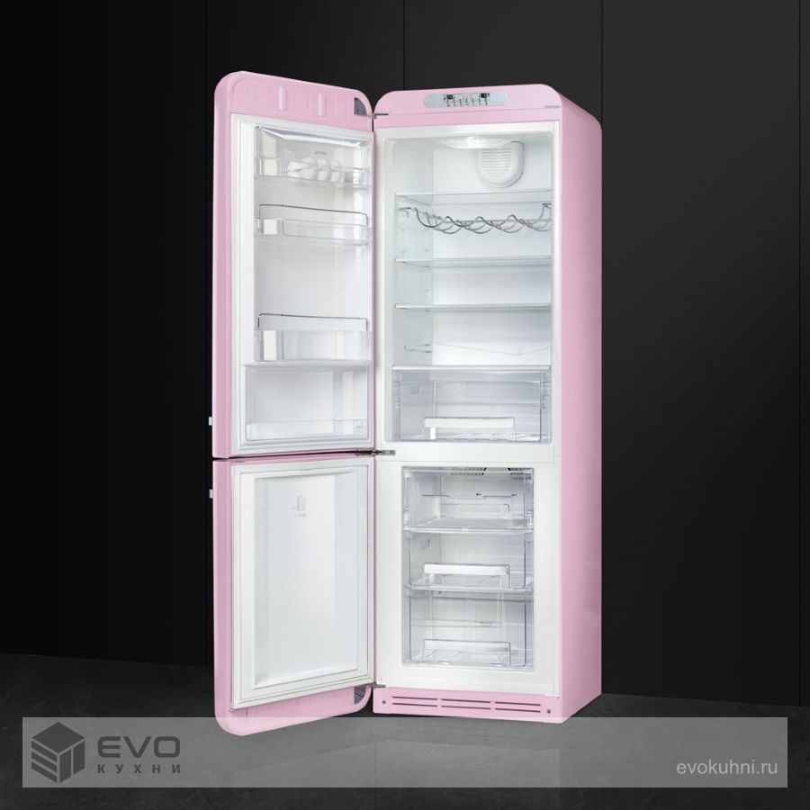 Отдельностоящий двухдверный холодильник, стиль 50-х годов, 60 см, розовый Класс энергопотребления А++.