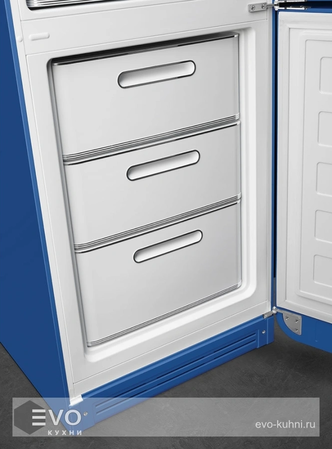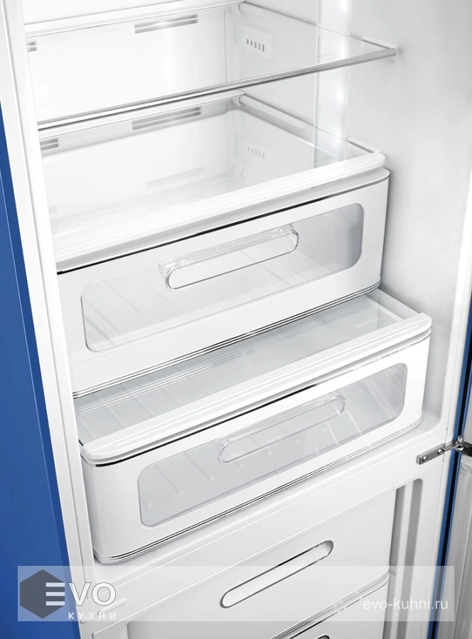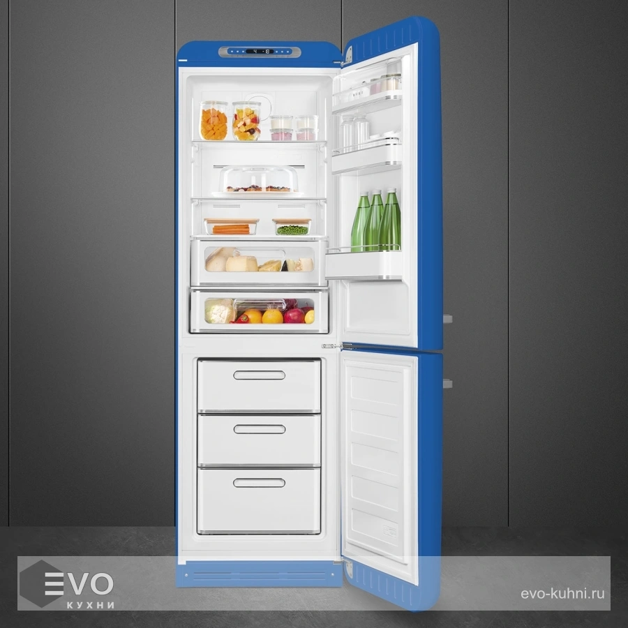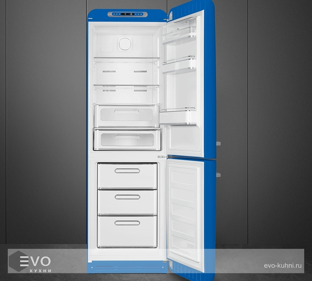 Холодильник Smeg FAB32RBE5 – отдельностоящий, двухдверный холодильник, стиль 50-х годов, характеризуется экономным потреблением электроэнергии, при достаточном объеме, который удовлетворит потребности хранения. Округлые формы и хромированные детали идеально сочетают внутренние и внешние двери холодильника. Профили ящиков на дверях и стеклянных полок имеют яркие хромированные элементы с ретро-дизайном.