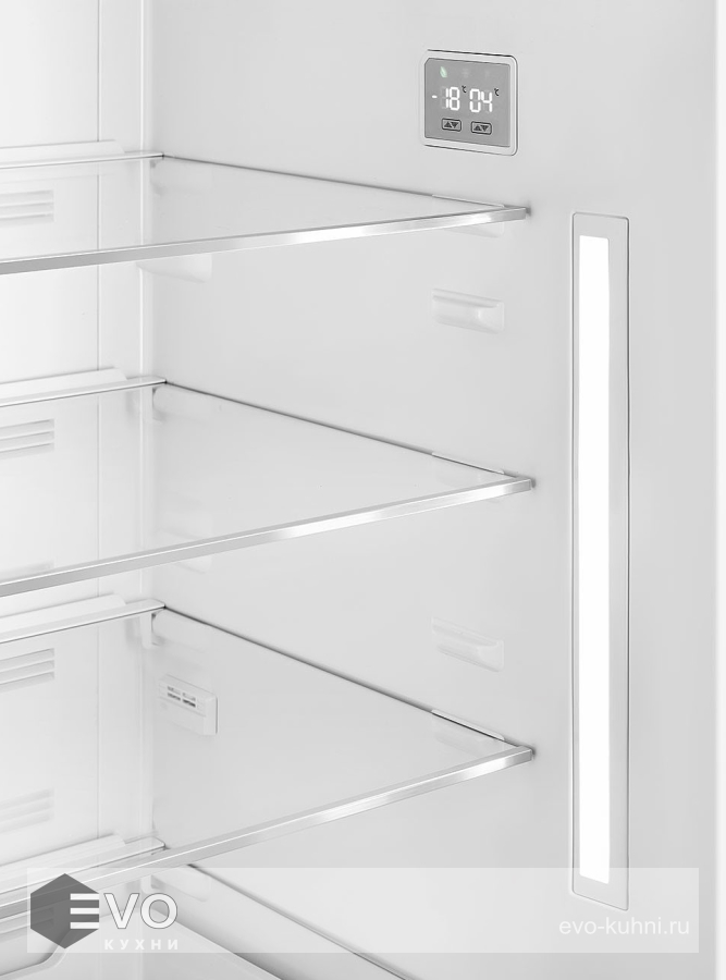 Яркие светодиодные полосы света размещены на обе стороны холодильника, чтобы обеспечить оптимальное освещение и полную видимость интерьера. Морозильная камера за раз обрабатывает до 8 кг продуктов, а также способна в автономном режиме сохранять установленную температуру до 14 часов.