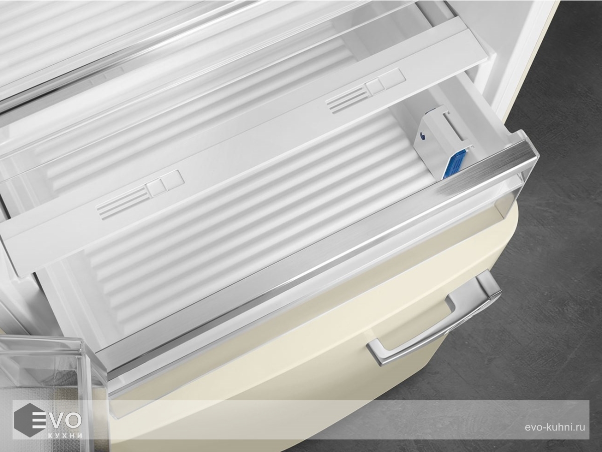 Холодильник Smeg FAB38LCR5 – отдельностоящий, двухдверный холодильник, стиль 50-х годов, характеризуется экономным потреблением электроэнергии, при достаточном объеме, который удовлетворит потребности хранения. Округлые формы и хромированные детали идеально сочетают внутренние и внешние двери холодильника. Профили ящиков на дверях и стеклянных полок имеют яркие хромированные элементы с ретро-дизайном.