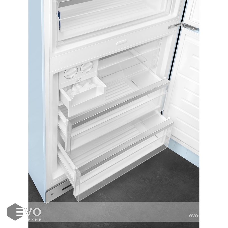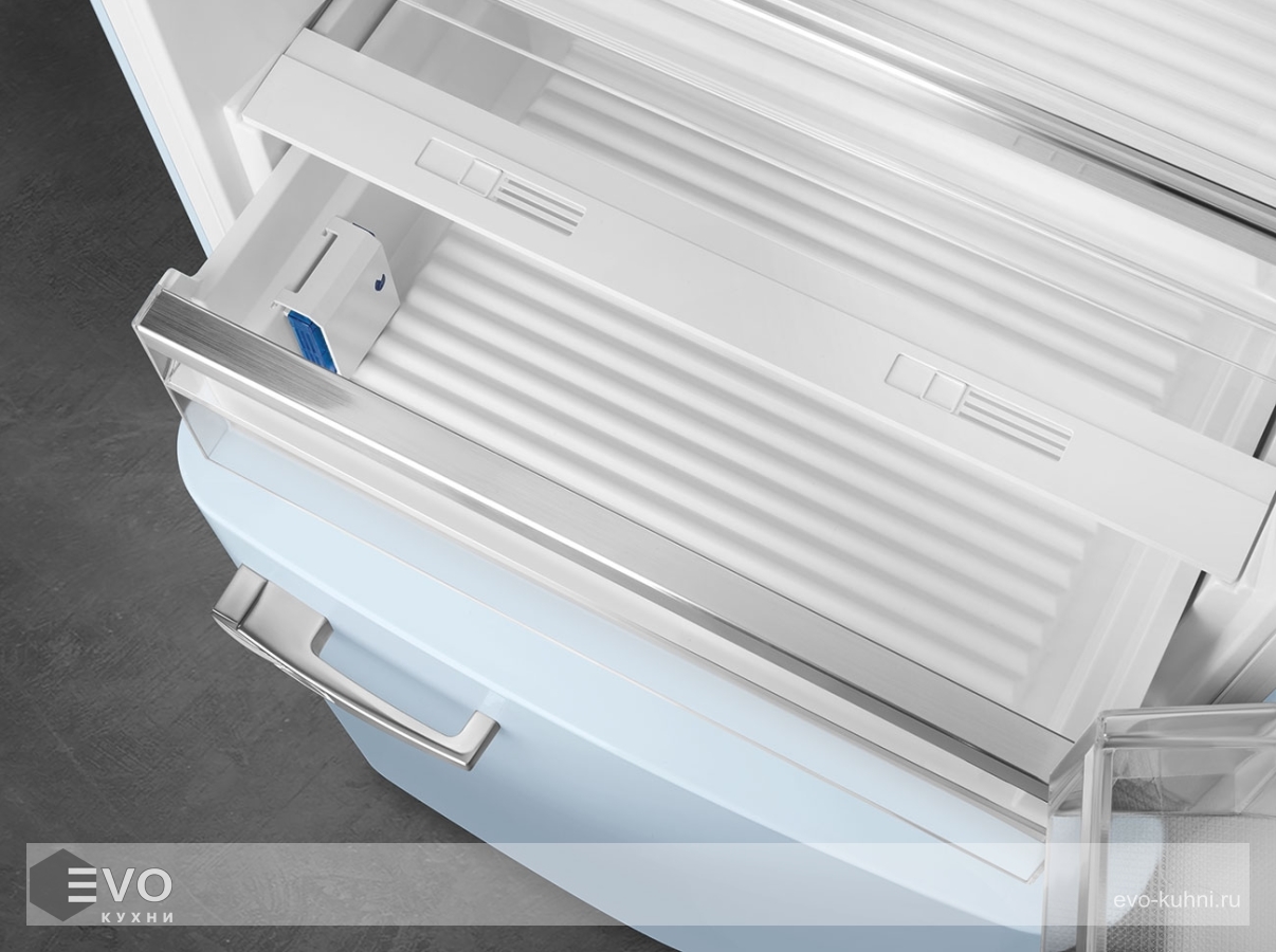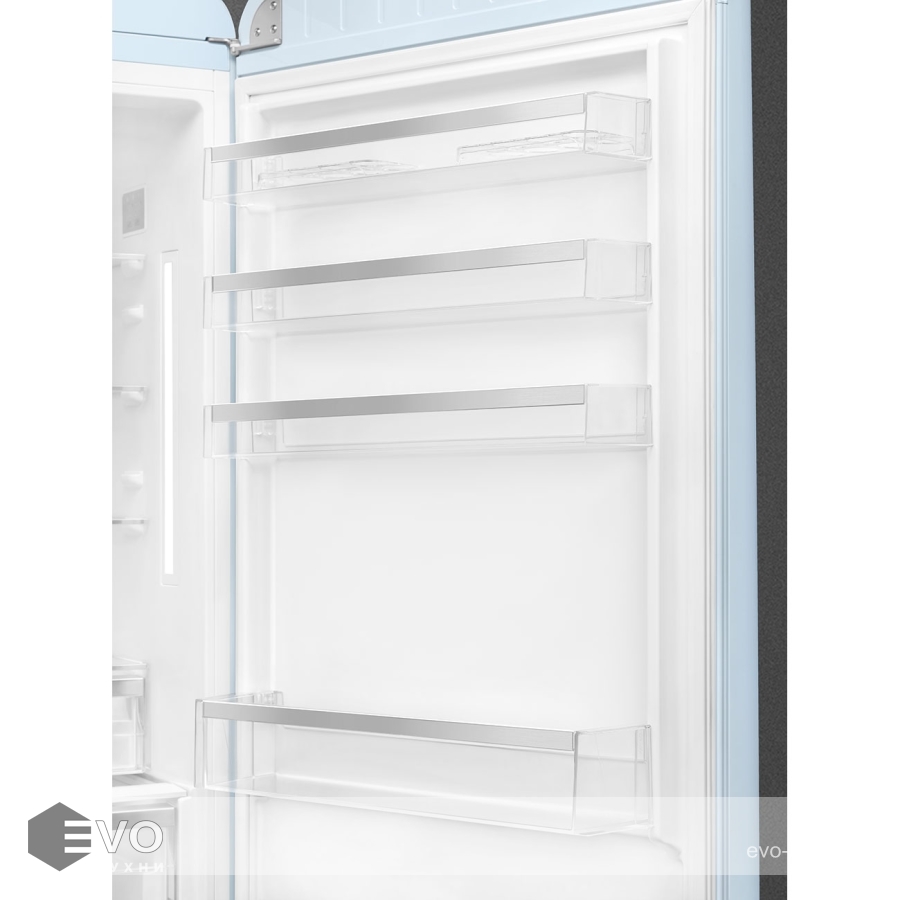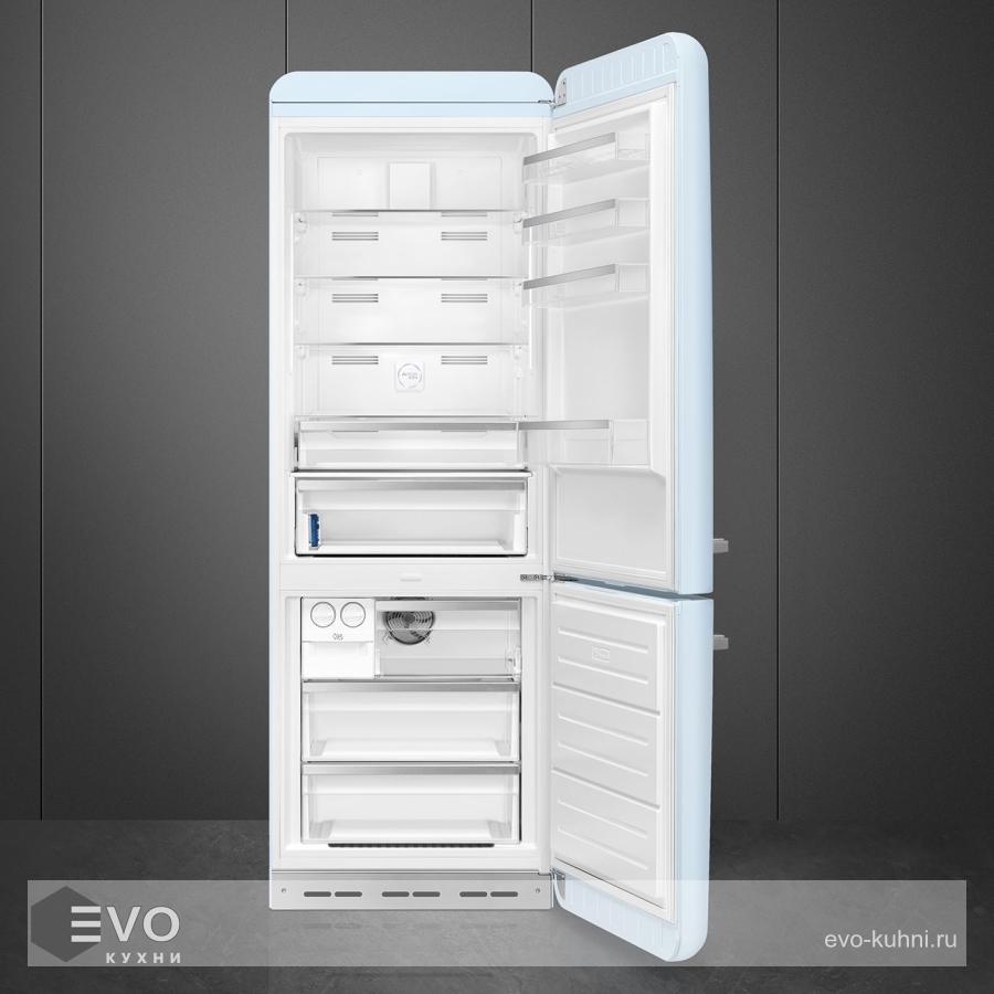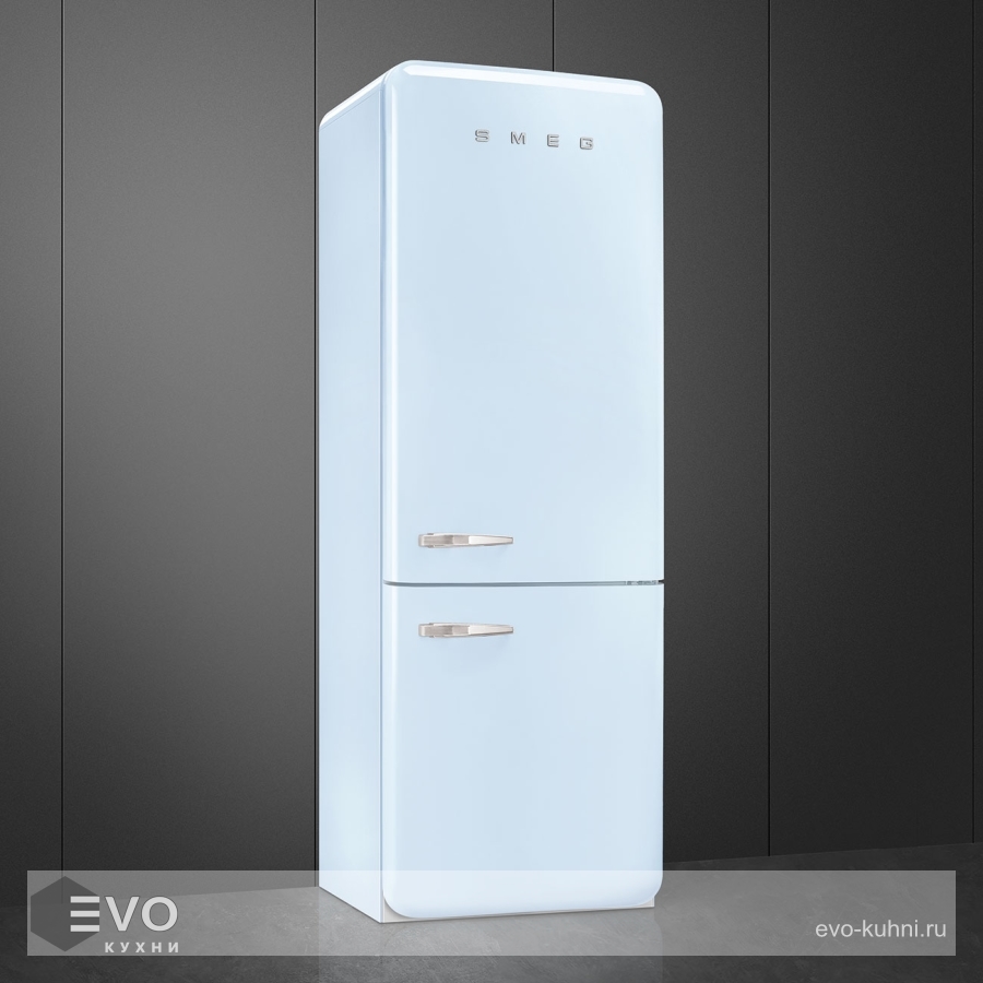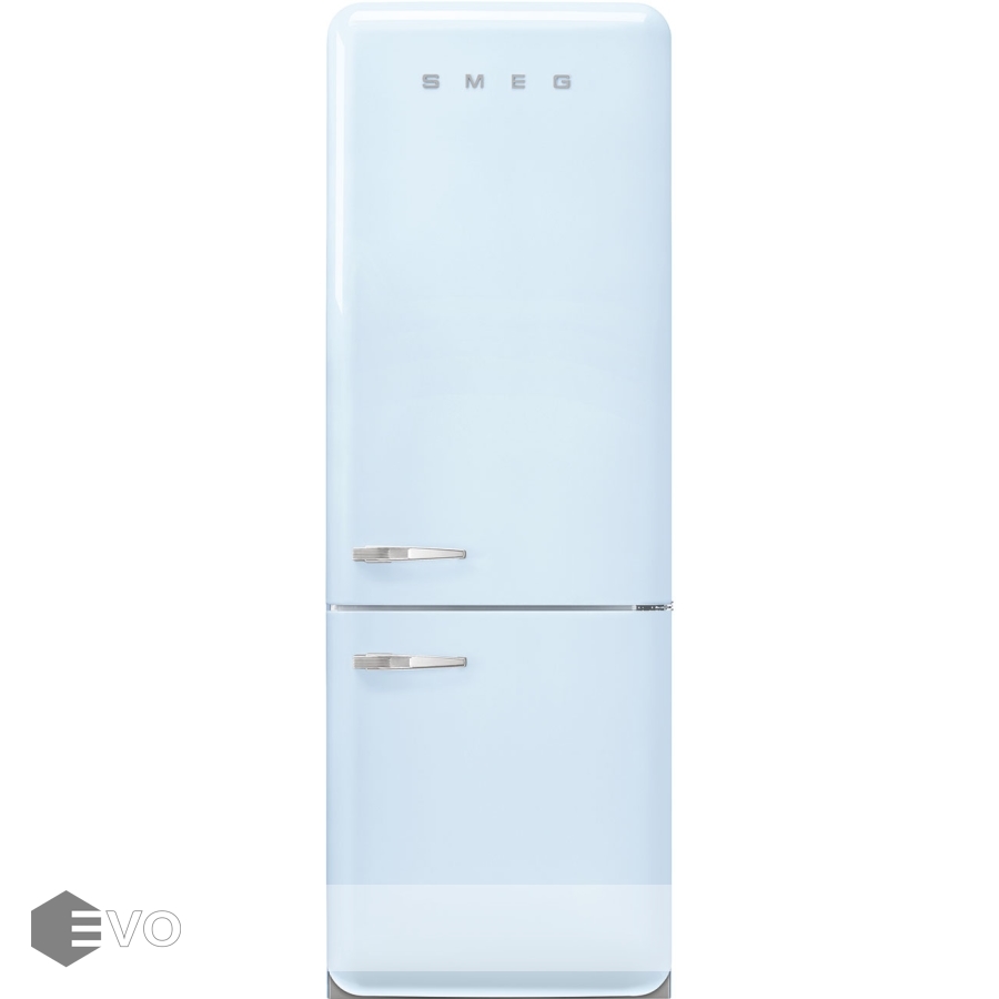 Холодильник Smeg FAB38RPB5 – отдельностоящий, двухдверный холодильник, стиль 50-х годов, характеризуется экономным потреблением электроэнергии, при достаточном объеме, который удовлетворит потребности хранения. Округлые формы и хромированные детали идеально сочетают внутренние и внешние двери холодильника. Профили ящиков на дверях и стеклянных полок имеют яркие хромированные элементы с ретро-дизайном.
