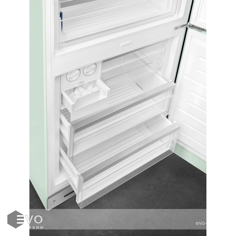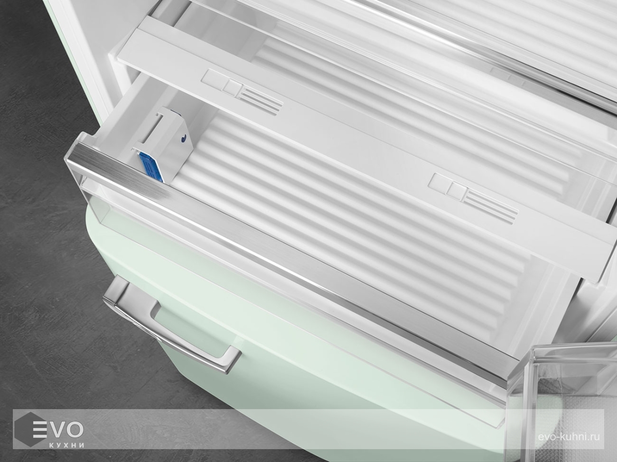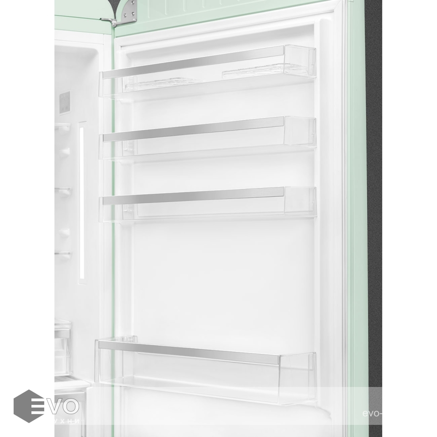 Холодильник Smeg FAB38RPG5 – отдельностоящий, двухдверный холодильник, стиль 50-х годов, характеризуется экономным потреблением электроэнергии, при достаточном объеме, который удовлетворит потребности хранения. Округлые формы и хромированные детали идеально сочетают внутренние и внешние двери холодильника. Профили ящиков на дверях и стеклянных полок имеют яркие хромированные элементы с ретро-дизайном.
