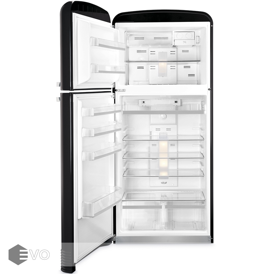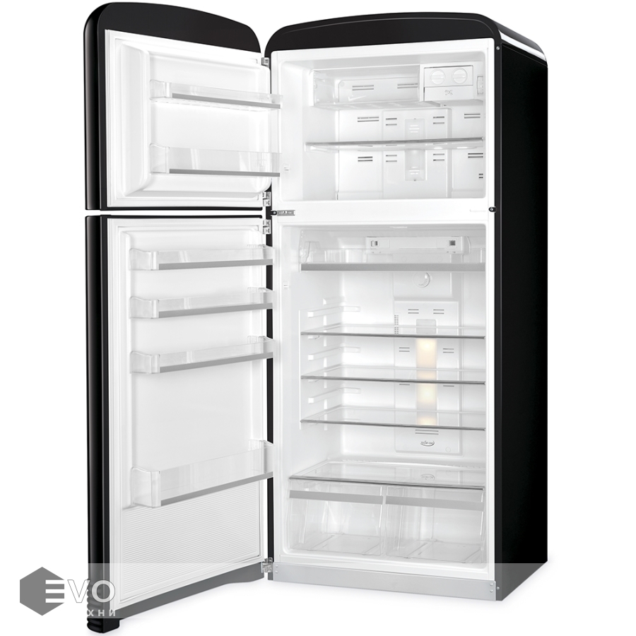 Холодильник Smeg FAB50LBL5 – отдельностоящий, двухдверный холодильник, стиль 50-х годов, характеризуется экономным потреблением электроэнергии, при достаточном объеме, который удовлетворит потребности хранения. Округлые формы и хромированные детали идеально сочетают внутренние и внешние двери холодильника. Профили ящиков на дверях и стеклянных полок имеют яркие хромированные элементы с ретро-дизайном.