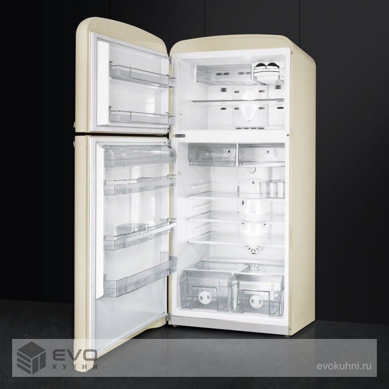 Отдельно стоящий двухдверный холодильник Smeg FAB50POS — идеальное решение для классического кухонного интерьера. Кремовый корпус модели дополнен изящной латунной фурнитурой, подчеркивающей непревзойденный стиль бытовой техники 50-х годов. Практичная технология NoFrost предотвращает образование инея в холодильном и морозильном отделениях устройства, благодаря чему исключается необходимость их ручной разморозки. Для длительного хранения фруктов и овощей имеется вместительная зона свежести, поддерживающая внутреннюю температуру от 0°C до +3°C.
