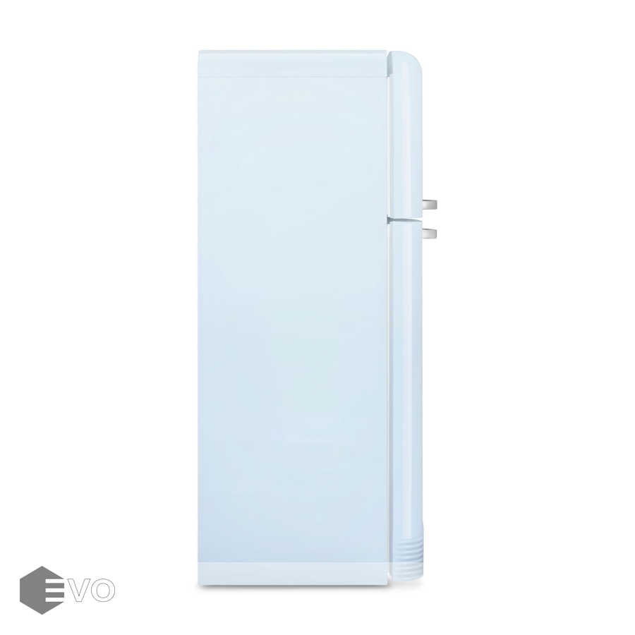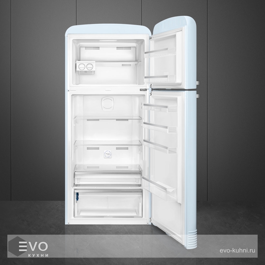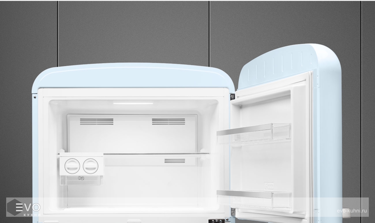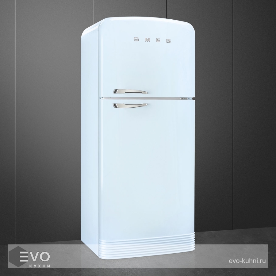 Холодильник Smeg FAB50RPB5 – отдельностоящий, двухдверный холодильник, стиль 50-х годов, характеризуется экономным потреблением электроэнергии, при достаточном объеме, который удовлетворит потребности хранения. Округлые формы и хромированные детали идеально сочетают внутренние и внешние двери холодильника. Профили ящиков на дверях и стеклянных полок имеют яркие хромированные элементы с ретро-дизайном.