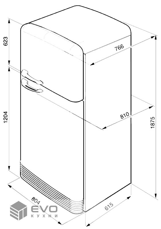 Размеры (В х Ш х Г): 1875 х 796 х 766 мм (глубина с ручкой - 810 мм)