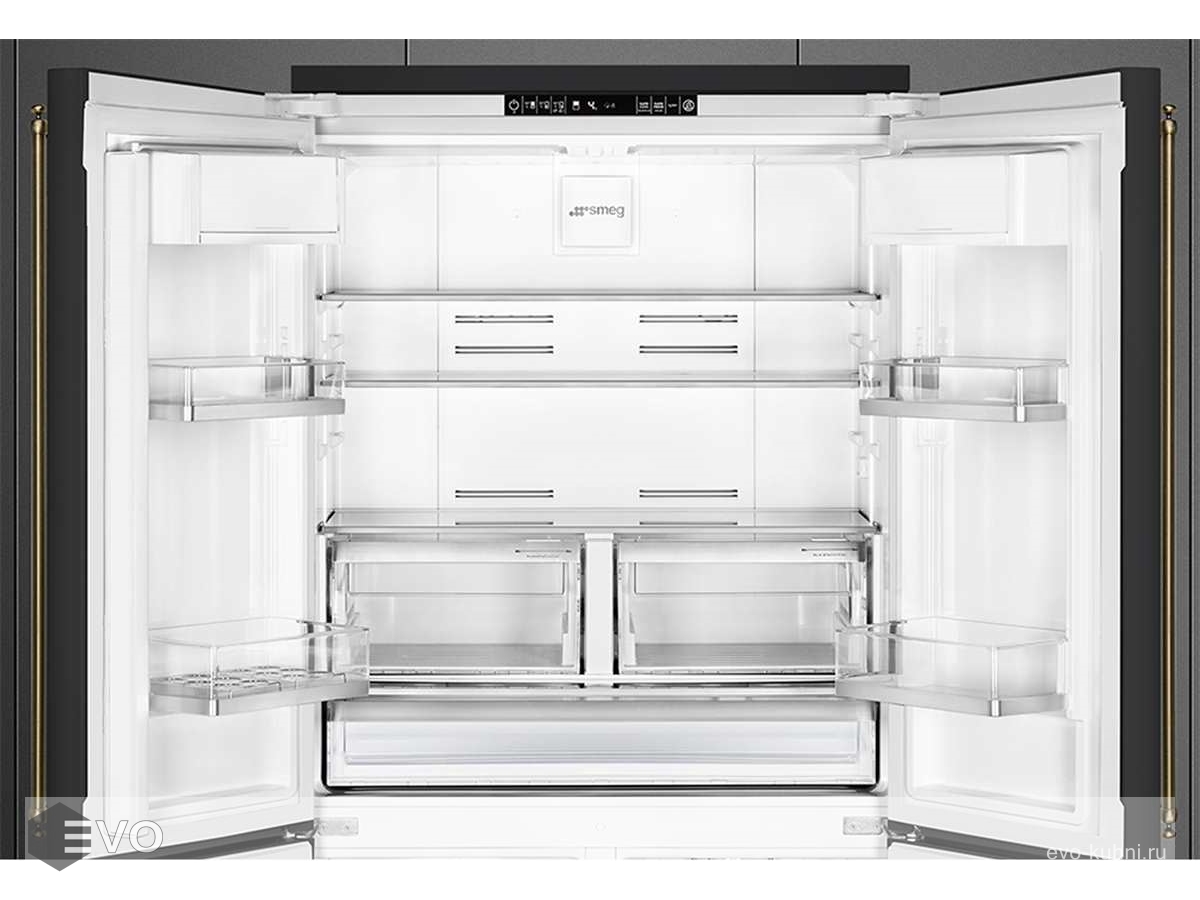 Холодильник Smeg FQ60CAO5 – двухкамерный холодильник выполнен в цвете антрацит с латунной фурнитурой. При помощи LED-дисплея можно быстро и комфортно настроить все необходимые параметры работы прибора. Система автоматической разморозки No-Frost освобождает ваше личное время и делает работу с холодильником намного комфортнее.