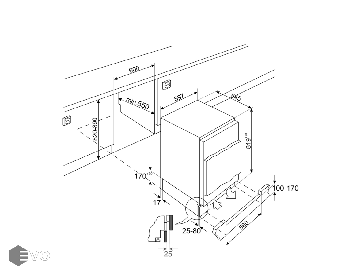 Холодильник Smeg U8L080DF – встраиваемый под столешницу, однокамерный холодильник с автоматической разморозкой. Дверной упор по умолчанию расположен справа, но вы можете изменить его, чтобы открывать дверь в противоположную сторону. Благодаря такой конструкции прибор можно установить на любой кухне, как бы близко друг к другу не стояла мебель.